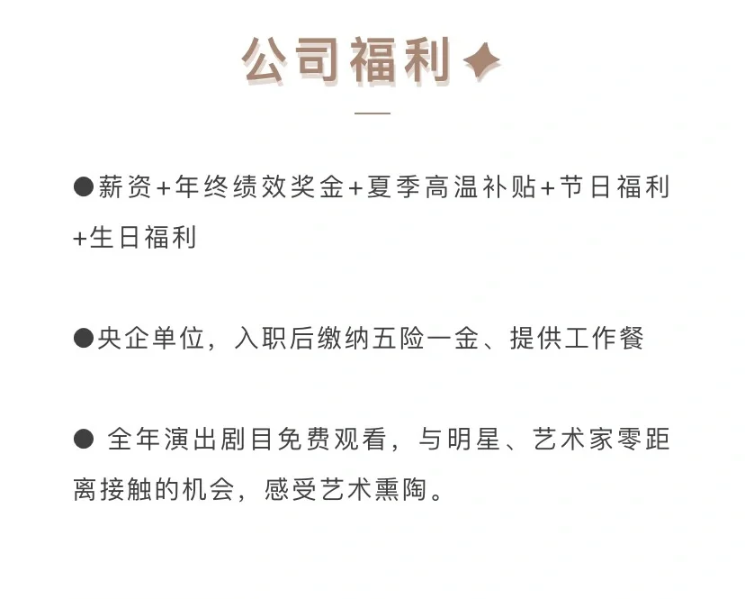 3名丨温州大剧院! 1⃣️人事行政部 / 行政文员 [飞吻R]任职要求 工作性质:全职 职位招聘人数:2人 [飞吻R]岗位职责 具备一定文字功底,负责文件梳理及信息报送工作 2⃣️营销中心 / 宣传策划员工 [飞吻R]任职要求 工作性质:全职 职位招聘人数:1人 学历要求:艺术传媒类、新闻学、语言类、营销类相关专业,大专及以上学历,有能力者学历可综合考虑; 工作经验:1年及以上文化演出行业市场营销相关工作经验。 专业技能:微信软文编辑、市场策划 [飞吻R]岗位职责 1、执行剧院宣传计划,完成各项任务,并及时将进展情况向上级领导汇报。 2、负责制定宣传策划微信软文美工等编辑。 3、负责策划剧院以外的演出项目及协调相关事宜。 4、配合部门做好各项宣传工作; #温州找工作 #温州大剧院 #找工作 #温州 |