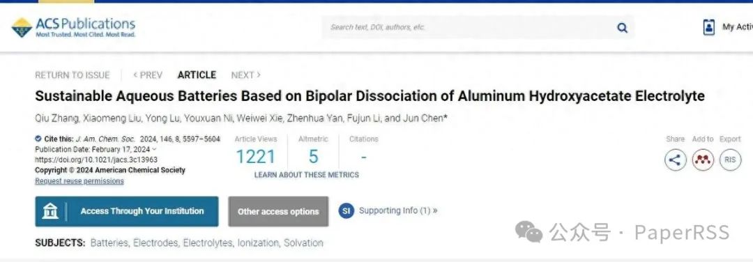 欢迎点击上方「PaperRss」↑关注我们! 近期,南开大学陈军院士团队在科研进展方面亮点频出,喜讯不断。不到一周之内,团队成果接连刊登在国际顶尖刊物JACS和Angew. Chem.上。 JACS:双极水系电解液的设计