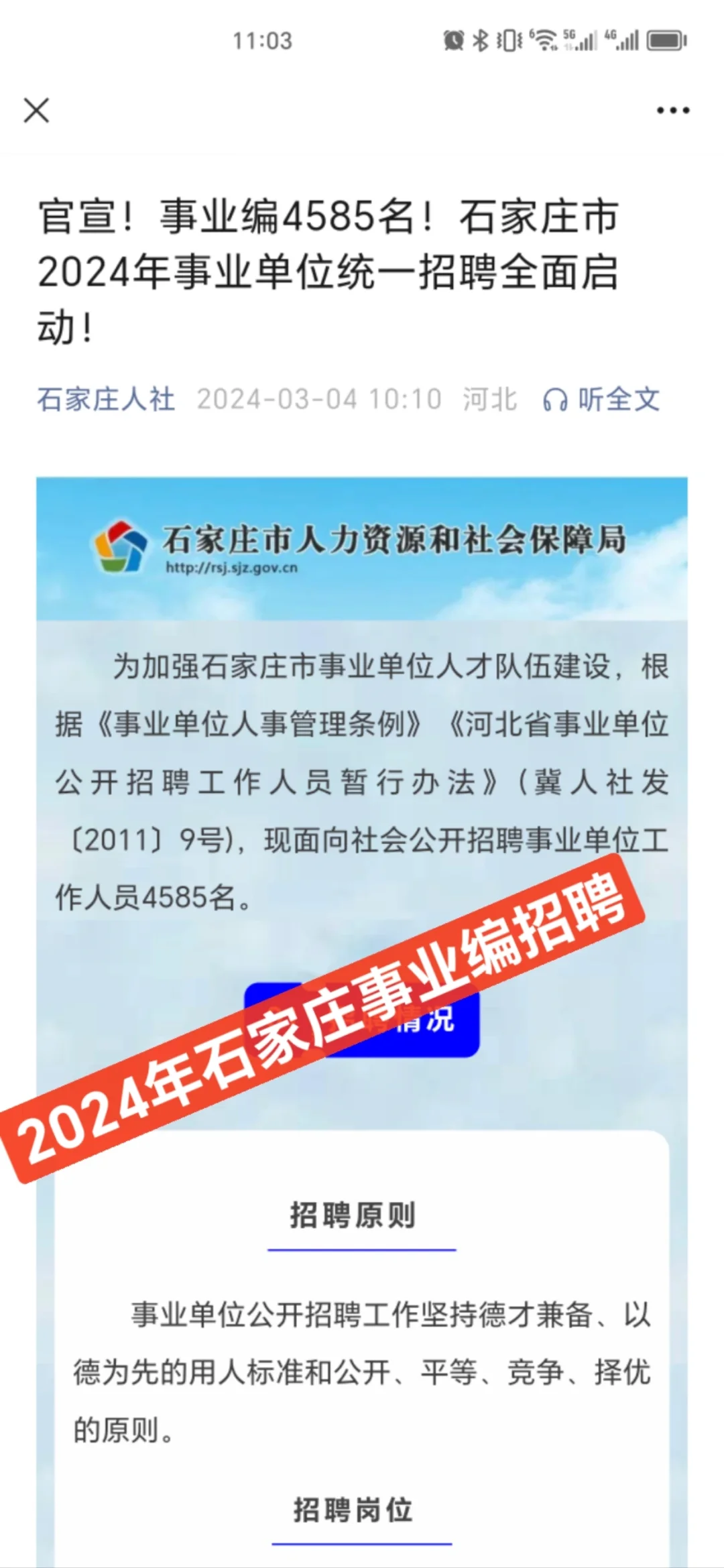 官宣!石家庄事业编招聘4585名!