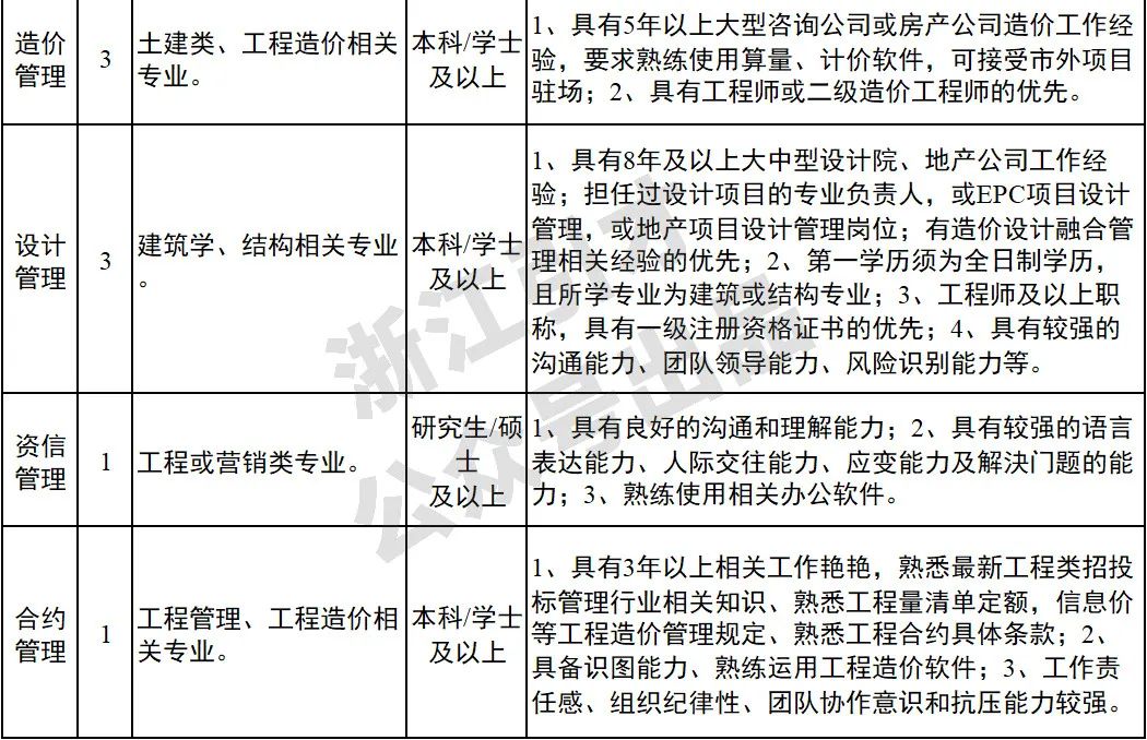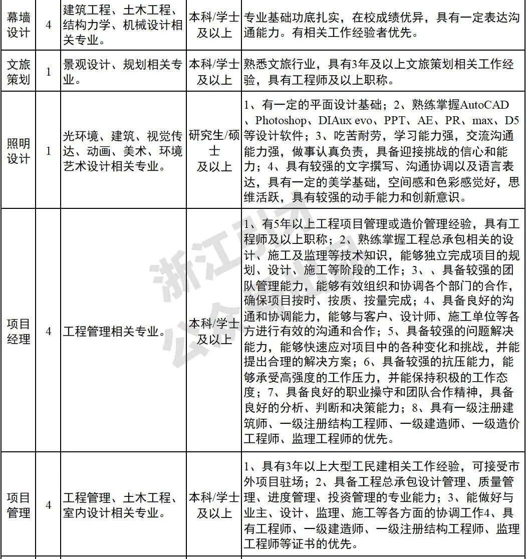本次招聘工作人员计划详见《浙江省建筑设计研究院2024年度春季招聘人员计划表》。