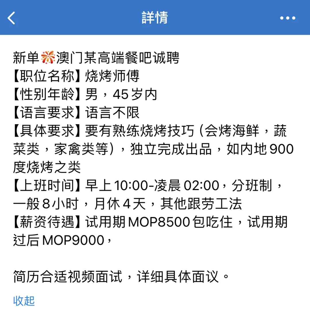 >新單💫澳門高端餐吧招聘燒烤師父🍖