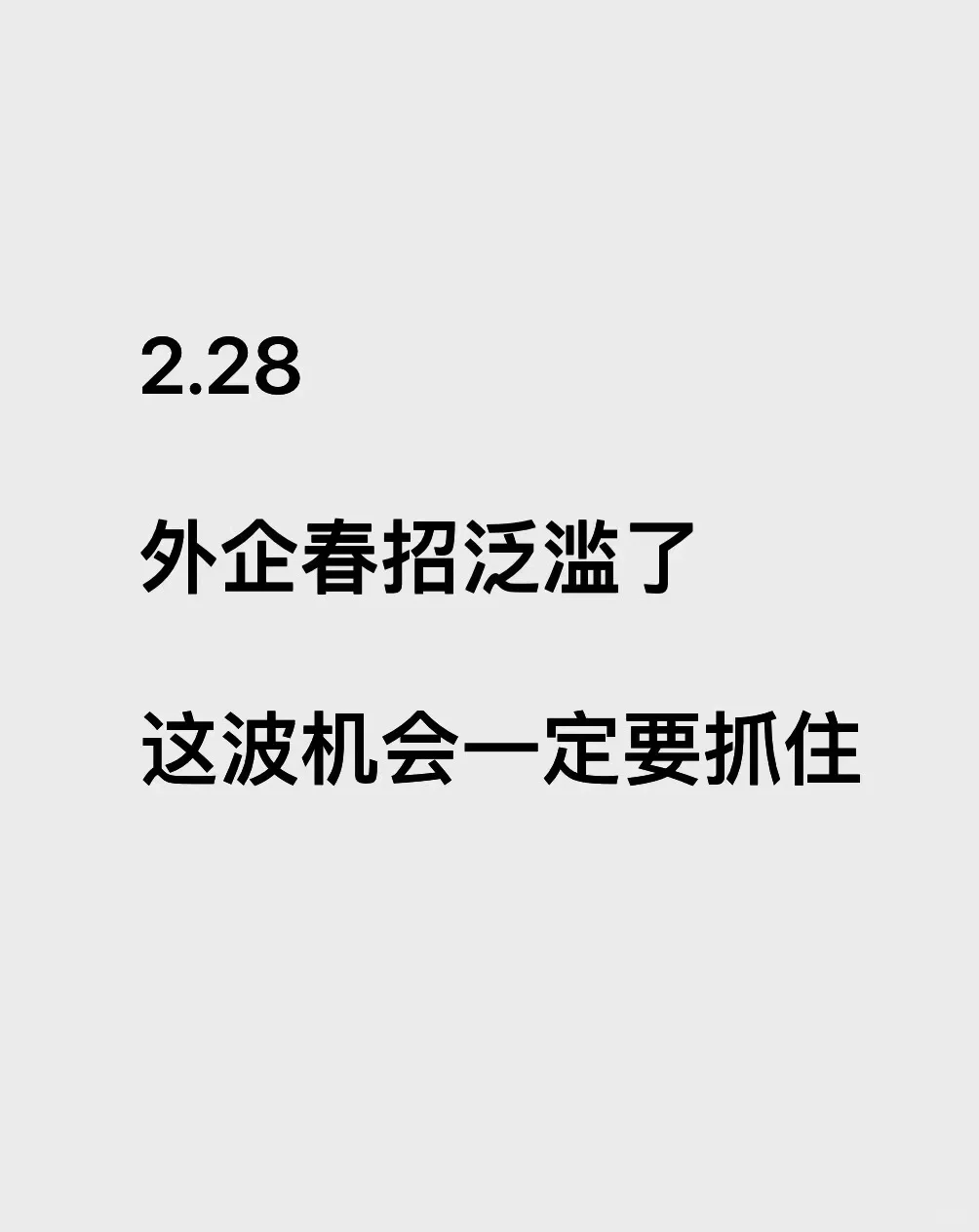 2.28 最近外企春招“泛滥”了 2月底外企春招竟然开了这么多!许多知名外企,比如安永、达能、丝芙兰、巴斯夫、达美乐、LVMH、迪奥、优衣库和星展银行等纷纷这两天开了春招! 外企究竟有哪些吸引人的优势呢? 首先,外企通常提供非常优厚的假期福利。年假一般从10天起步,并且逐年增长。大部分公司的年假都是10天或15天起步,这为员工提供了充足的休息和度假时间,有助于保持身心健康和工作效率。 其次,外企非常重视工作与生活的平衡。他们推崇弹性办公、灵活调休、双休等制度,使得员工能够更好地安排自己的时间,实现工作与生活的和谐平衡。这种灵活的工作方式不仅提高了员工的工作满意度,也有助于提高工作效率和创造力。 此外,2月底到3月是春招的高峰期,也是许多外企提前批招聘的机会。这是一个非常重要的时期,对于想要进入外企的求职者来说,是一个不容错过的机会。因此,我强烈建议大家多关注最近的春招信息,抓住这些宝贵的机会。 已经整理了最近新开的外企春招信息,希望能够帮助大家更好地了解这些机会。请大家抓紧时间投递简历,争取获得心仪的职位!同时,也希望大家能够充分利用这个春招季节,实现自己的职业目标和发展愿景。 #春招 #外企 #求职 #外企校招 #外企求职 #校招 #留学生回国找工作 #留学生找工作 #留学生求职 #24届校招 #外企面试 #外企找工作 |