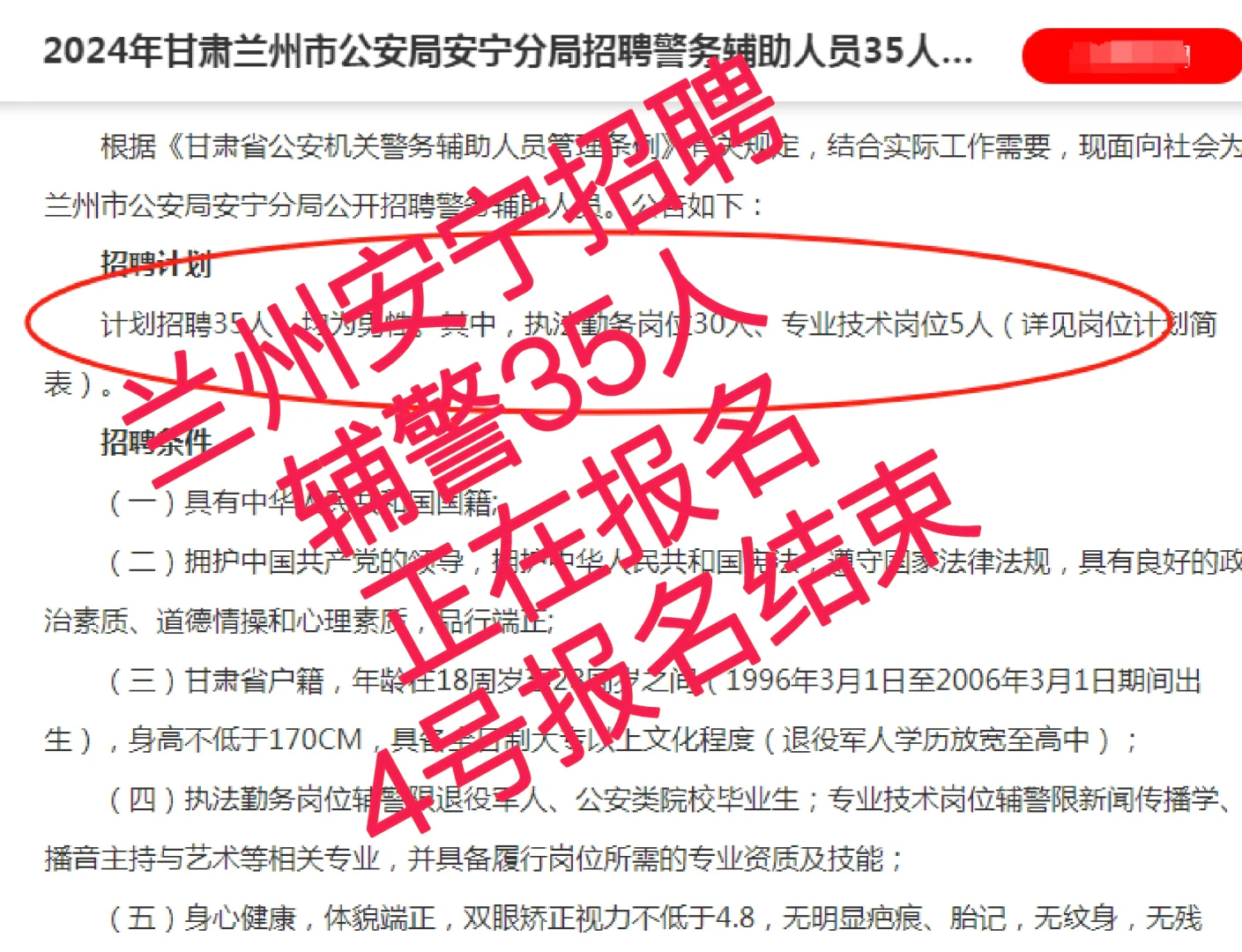 [炸弹]兰州公安局安宁分局招聘辅警35人,今