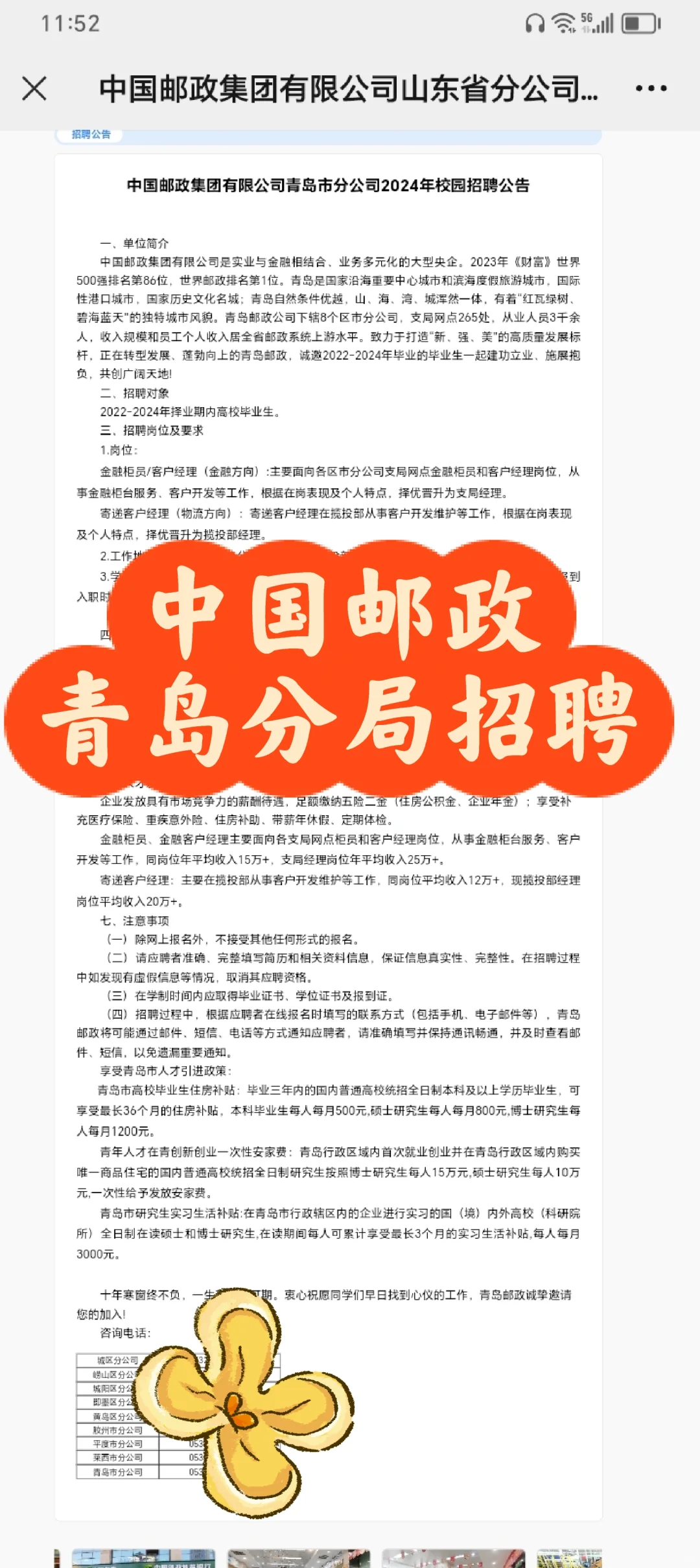 中国邮政青岛分局招聘开始了