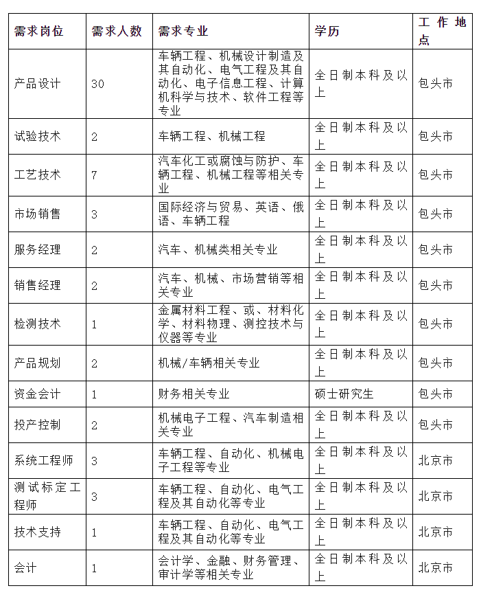点击下方☟小程序"蒙锡网" 查看全区更多招聘信息 中国兵器工业集团北奔重型汽车集团有限公司 2024年招聘公告单位概况 人才文化 以人为本 人尽其才 万众一心 使众人行 为激活增强人才活力,畅通人才发展通道,确保员工“有为有位”,公司为各类人员畅通了领导职务和非领导职务两条发展通道。 (一)领导职务序列 员工→公司基层管理人员→公司中层经营管理人员→公司高层经营管理人员 (二)非领导职务序列 1.科技人才发展通道 科技人员→分/子公司级科技带头人→公司级科技带头人→中国兵器科技带头人→中国兵器首席科学家→“两院”院士 2.技能人才发展通道 技能人才→分/子公司级技能带头人→公司级技能带头人→中国兵器关键技能带头人→中国兵器首席技师 招聘计划 ![]() (一)福利待遇 五险一金、购房补贴、带薪休假、高温假及安全假、健康体检、采暖补贴、跟投激励奖、开发承包奖、销售贡献奖等。 (二)薪酬标准 ![]() 1.包头市重点产业硕博士招引行动计划:非包头市已取得博士研究生和硕士研究生,及海外博士、硕士,可申请补贴博士研究生补贴20万元,硕士研究生10万元。 2.生活补贴:博士研究生3万元;硕士研究生1.5万元一次性人才奖励。 3.租房补贴:硕士研究生按照每月90平米,本科生按照每月30-60平米,每平米16元标准发放租房补贴。 4.购房折扣补贴:全职引进并落户的博士研究生享受3%的折扣补贴,“双一流”院校研究生享受1.5%的折扣补贴。 5.享受引进博士、硕士研究生的配偶就业、子女入学、医疗健康等服务保障项目。 联系方式 联系人:樊老师 联系电话:0472-3119538 简历投递到邮箱: beibenkaifake@163.com 企业公众号:北奔重汽 通讯地址:内蒙古包头市青山区装备制造园区兵工东路9号 特别声明 我公司未委托任何中介机构和个人组织实施招聘,招聘过程中不收取任何费用。 监督举报电话:0472-3119029 来源:中国兵器工业集团 |