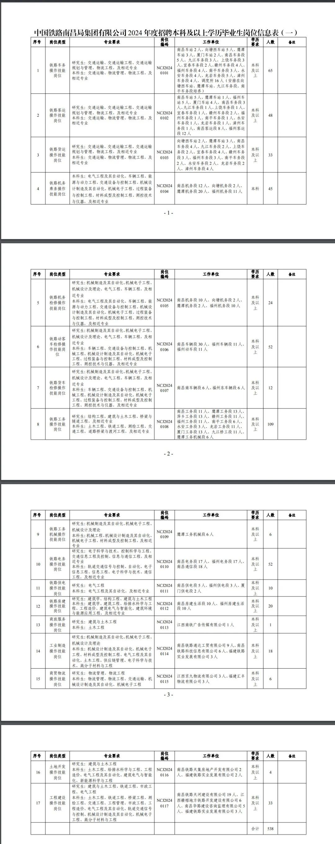 中国铁路南昌局集团有限公司根据企业发展需要,拟招聘普通高等院校本科及以上学历毕业生,现将有关事项公告如下: