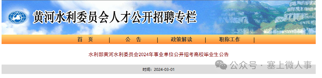 水利部黄河水利委员会(以下简称黄委)将统一组织实施2024年事业单位公开招考高校毕业生工作,现将有关事项公告如下。