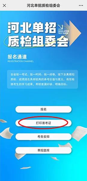 3月7日9时起,可以打印准考证。已完成报名的考生凭姓名、身份证号登录河北模拟质检平台报名系统,进入打印准考证栏目自行打印。