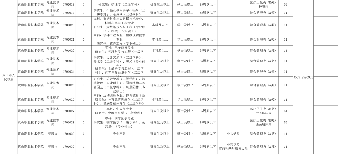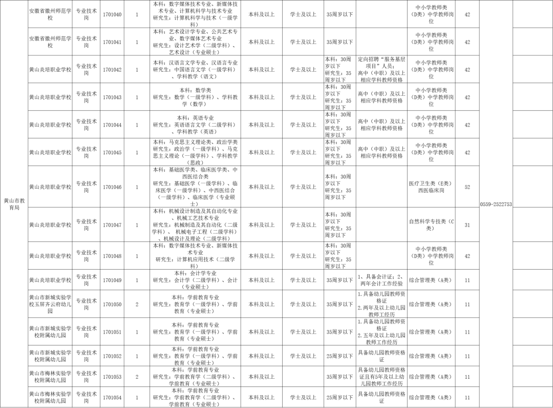 1.黄山市2024年度市直事业单位统一笔试公开招聘工作人员岗位表(职校部分)