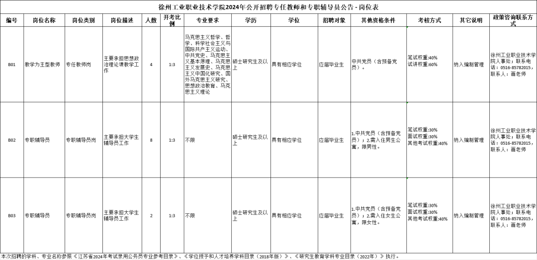 徐州工业职业技术学院2024年公开招聘专任教师和专职辅导员公告