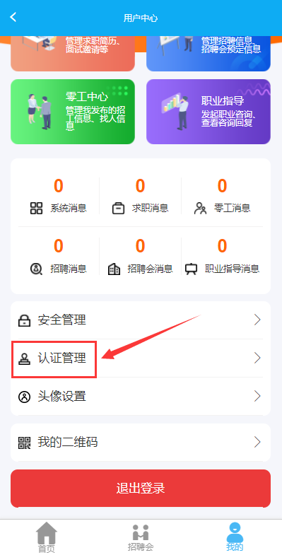 第三步:注册成功后,可进入个人中心,选择“认证管理”进行单位认证管理。单位注册申请提交后,人工审核一般需要1-3个工作日,审核结果将以短信形式发送到您的注册手机号。或可拨打属地镇、街、开发区公共就业服务机构电话加速审核。审核通过后即可报名现场招聘会或网络招聘会并发布职位。(具体操作流程可参见附件一:天津政府公共就业服务网-企业操作手册)