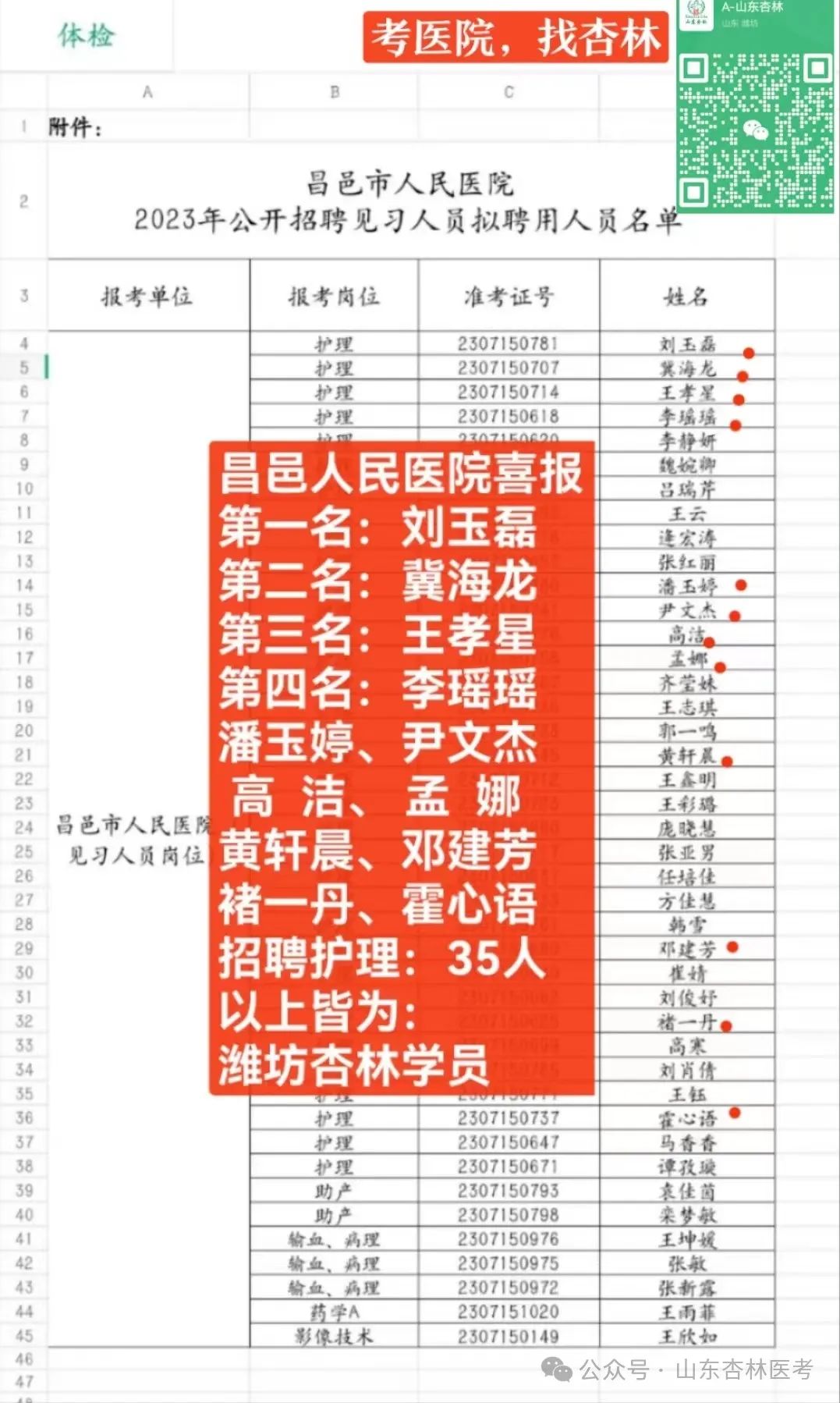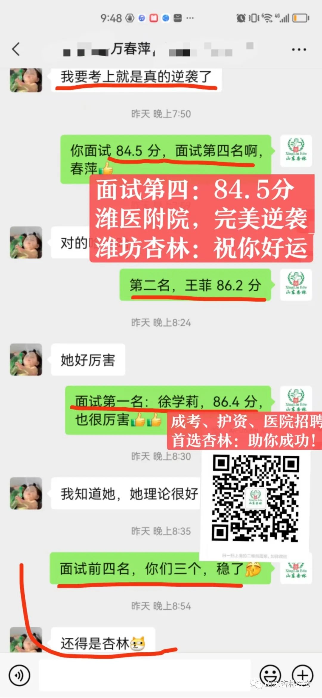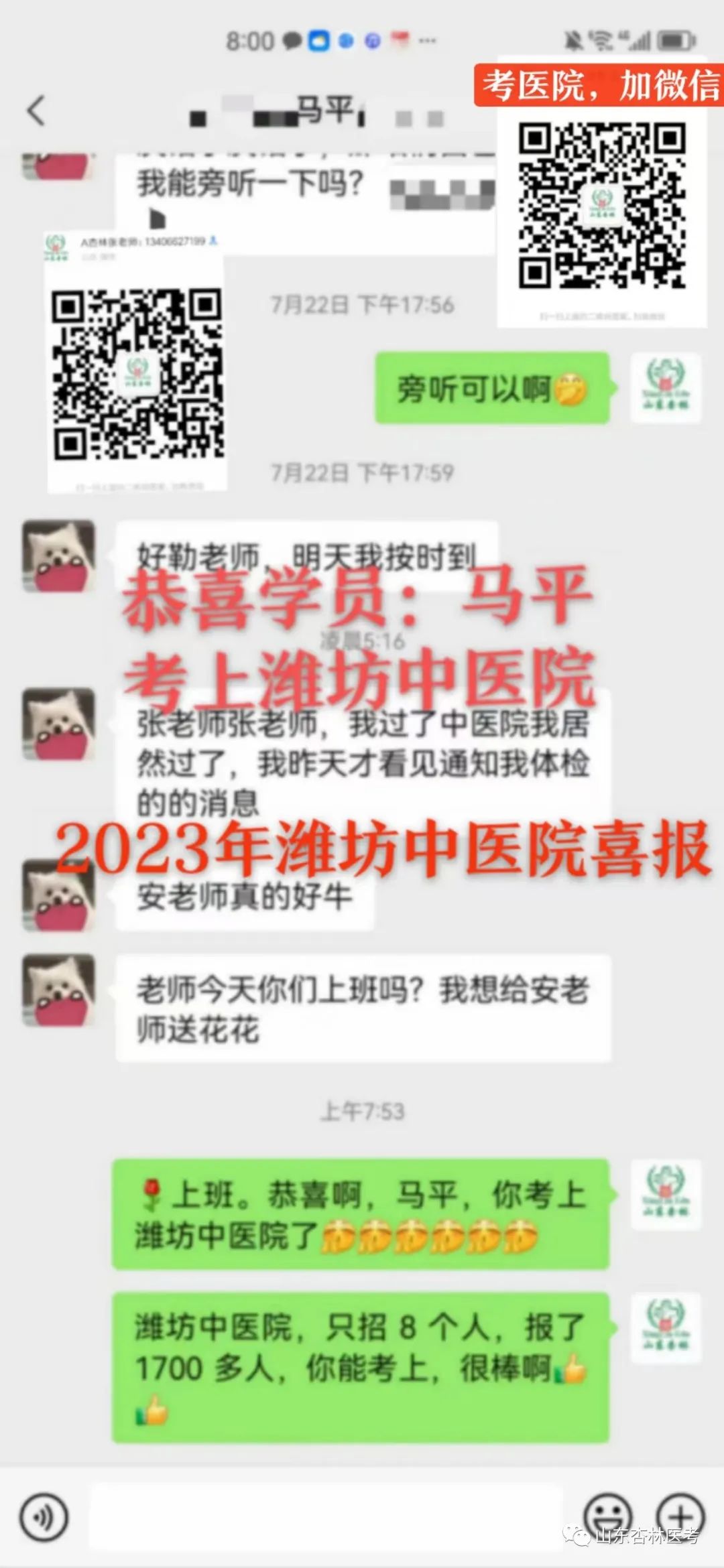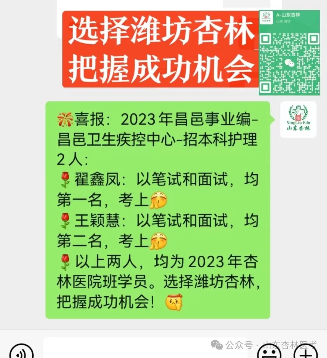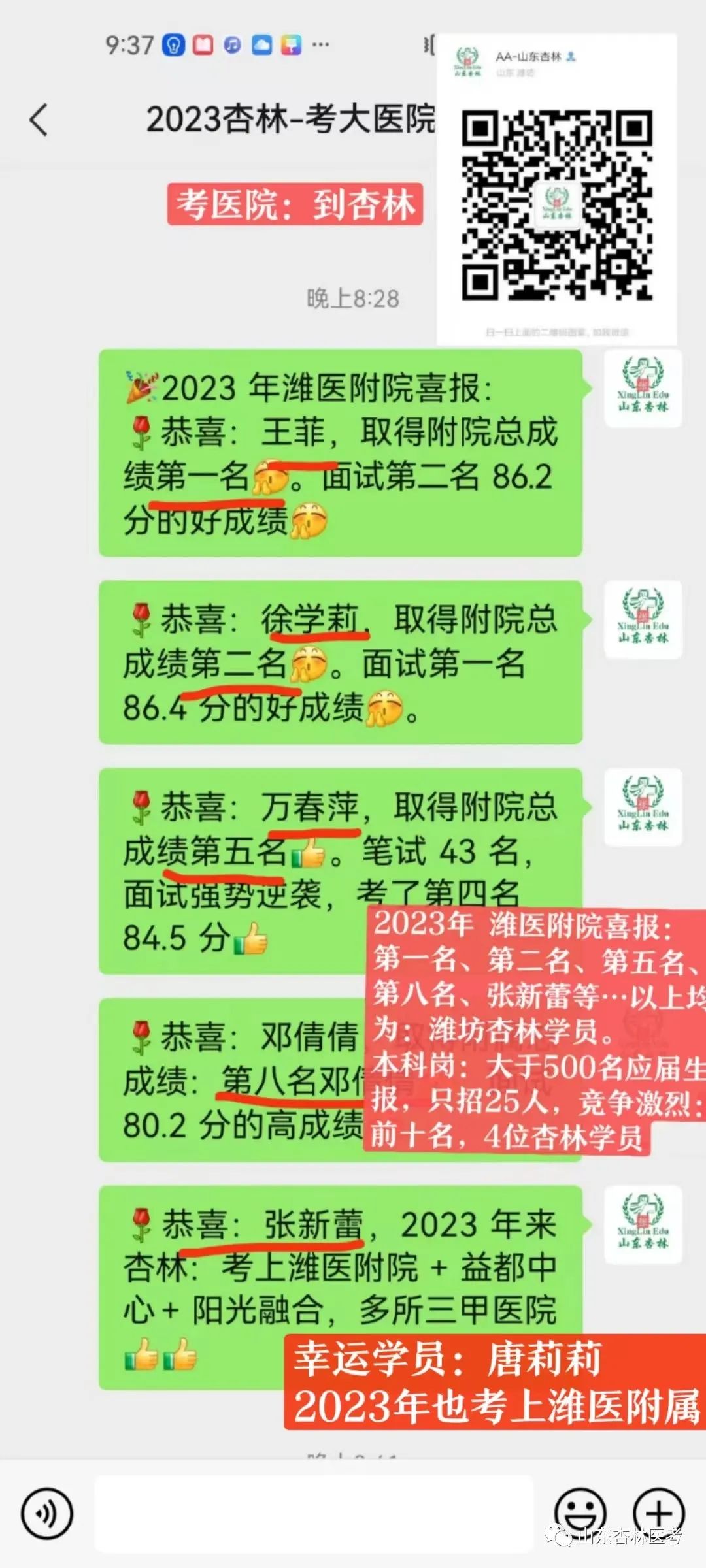 昌邑市卫生健康局 2024年2月23日 扫一扫在手机打开当前页 2024年到“杏林”,定能逢考必过! 山东杏林医考:助您一步领先,步步领先! 座次名额有限,欲报从速!限额招生50人,招满停报! 成功电话(微信同步): 张老师:134 0662 7199 安老师:133 3636 2899 座 机: 0536-5170398 更多精彩内容,请扫描下面二维码,加微信! |