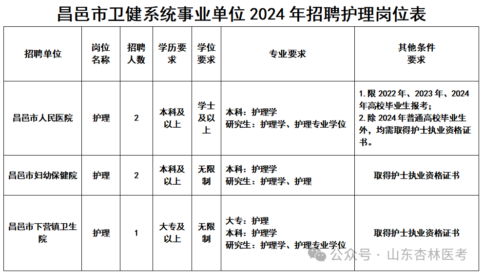 附件:昌邑市卫健系统事业单位2024年公开招聘工作人员岗位汇总表