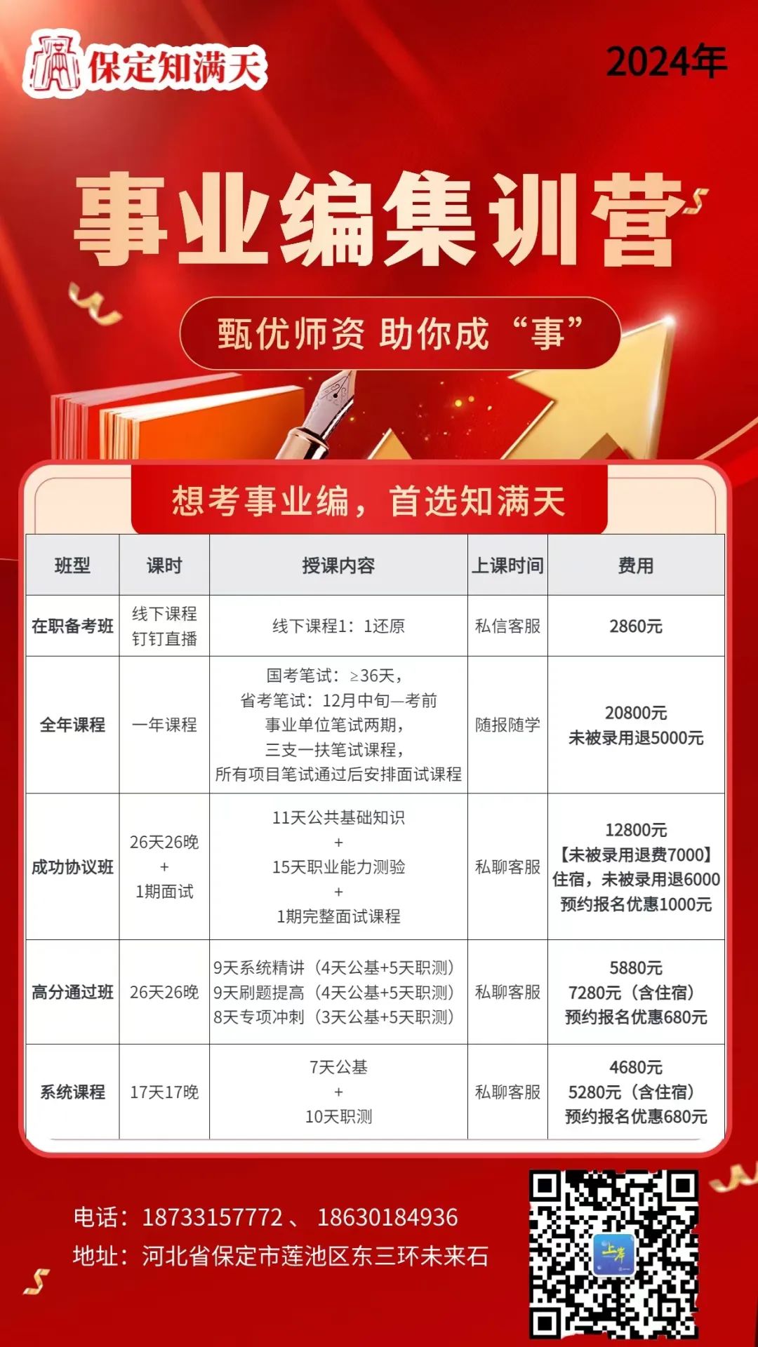 2024年石家庄事业单位本次招录4585人 为加强石家庄市事业单位人才队伍建设,根据《事业单位人事管理条例》《河北省事业单位公开招聘工作人员暂行办法》(冀人社发〔2011〕9号),现面向社会公开招聘事业单位工作人员4585名,有关事项公告如下:5.年龄在18周岁及以上、35周岁及以下(1988年3月5日至2006年3月5日期间出生),应届硕士研究生、博士研究生或具有副高级职称的可放宽到40周岁及以下(1983年3月5日及以后出生)。退役军人报考中小学教师岗位的,年龄可放宽到40周岁及以下(1983年3月5日及以后出生)。岗位条件中对年龄有具体要求的,从其要求。6.具有国家承认的大学专科或以上学历(通过自学考试、成人教育、网络教育、夜大、电大等非普通高等学历教育形式于2024年7月底前取得相应毕业证书和岗位要求的学位证书;普通高等学历教育<非在职>应届毕业生于2024年7月底前毕业取得相应毕业证书和岗位要求的学位证书;留学回国人员于2024年7月底前取得国<境>外学位并完成教育部留学服务中心学历、学位认证)。7.具备与招聘岗位要求相适应的年龄、学历、专业或技能等条件(详见附件1),国外留学生须出具教育部留学服务中心认证的学历、学位认证书。1.岗位条件中“高校毕业生(含择业期内)”包括以下人员:(1)纳入国家统招计划、被普通高等院校录取的2024年高校毕业生。(2)国家统一招生的2022年、2023年普通高校毕业生择业期内未落实工作单位,其档案关系仍保留在原毕业学校,或保留在各级毕业生就业主管部门(毕业生就业指导服务中心)、各级人才交流服务机构和各级公共就业服务机构的毕业生。(3)2024年7月底前取得国(境)外学位并完成教育部留学服务中心学历、学位认证的留学回国人员,以及2022年、2023年取得国(境)外学位并完成教育部留学服务中心学历、学位认证且未落实工作单位的留学回国人员。2.岗位条件中“服务基层项目人员”是指:参加石家庄市“三支一扶”计划、“大学生村医”服务期满(含2024年)且考核合格人员,以及在石家庄市服务且2024年当年服务期满的“农村义务教育阶段学校教师特设岗位计划”、“大学生志愿服务西部计划”人员。3.岗位条件中“退役军人”是指依法退出现役的军官、军士和义务兵。4.岗位条件中“退役大学生士兵”是指以下两类人员:一是从石家庄市应征入伍、服役期满退出现役,入伍前取得普通高等教育大学专科以上学历的退役士兵;二是大学期间从石家庄市应征入伍、服役期满退出现役后复学,取得普通高等教育大学专科以上学历的退役士兵。5.岗位条件中“服务冬奥大学生志愿者”是指2024年应届毕业生中服务冬奥会、冬残奥会的大学生志愿者。6.符合招聘条件的港澳台居民,均可报名应聘相应岗位,需取得祖国大陆承认的学历。7.职业院校毕业生报考时,在符合专业等其他条件的前提下,技工院校预备技师(技师)班毕业生可报名应聘学历要求为大学本科的岗位,高级工班毕业生可报名应聘学历要求为大学专科的岗位。8.面向社会招收的住院医师如为普通高校应届毕业生的,其住培合格当年在医疗卫生机构就业,按当年应届毕业生同等对待;经住培合格的本科学历临床医师,按临床医学、口腔医学、中医专业学位硕士研究生同等对待。9.岗位条件中的“基层工作经历”是指:在县(市、区、旗)、乡(镇、街道)党政机关,村(社区)党组织或者村(居)委会,以及各类企业、事业单位(参照公务员法管理的事业单位不在此列)工作过。在军队团或相当团以下单位工作的经历,退役士兵在军队服现役经历,可视为基层工作经历。应届毕业生在校期间的社会实践(实习)经历,不能视为基层工作经历。招聘岗位要求工作经历时间的计算方法:从2024年3月5日算起,此前累计工作时间每满12个月计为1年。10.报考人员不得报考《事业单位人事管理回避规定》(人社部规〔2019〕1号)第六条和《河北省事业单位公开招聘工作人员暂行办法》(冀人社发〔2011〕9号)第四十一条所列聘用后即构成回避关系的招聘岗位。报名网址:石家庄市人事考试中心网上报名服务平台(https://sjz.appms.cn)。考生完成网上报名后,于3月26日9:00以后进入石家庄市人事考试中心网上报名服务平台(https://sjz.appms.cn),登录个人账号,下载打印《笔试准考证》(A4纸张,黑白、彩色均可)3月30日上午9:00—11:00《公共基础知识》,下午14:00—16:00《专业科目》。3月31日上午9:00—11:00《公共基础知识》,下午14:00—16:00《专业科目》。请考生按照笔试准考证上明确的时间、地点和场次按时参加笔试。笔试考2个科目,采取闭卷方式,题型全部为客观题,每个科目满分100分。《公共基础知识》为公共科目,主要内容为时事、政治理论、经济、法律、公文写作及其他相关知识。教育类考生专业科目为《教育基础理论》,主要内容为教育学、教育心理学、教育法律法规、教师职业道德等;卫生类考生专业科目为《卫生基础理论》,主要内容为医疗卫生基础知识、基本技能、相关法律法规等;笔试成绩=《公共基础知识》分数×50%+《专业科目》分数×50%。笔试合格分数线为60分。4月8日前公布笔试成绩和进入资格复审人员名单,考生可登录石家庄市人事考试中心网上报名服务平台(https://sjz.appms.cn)进行查询。4月10日至11日,由招聘单位及其主管部门进行资格复审。资格复审地点在笔试成绩网上查询