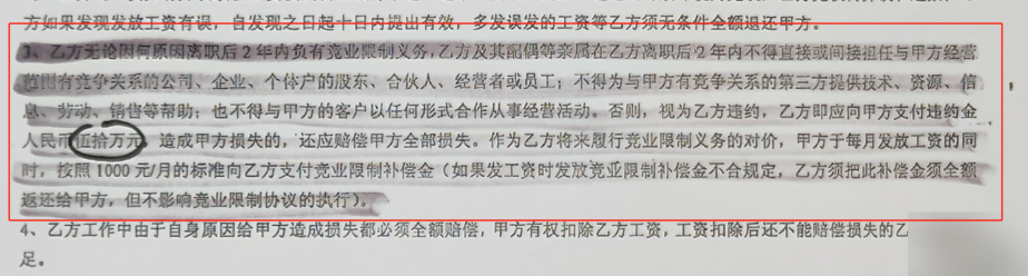 在审理中,人民法院会根据违约期限、违约行为程度及竞业限制补偿金获取与否和获取金额等因素综合考虑,尽量平衡双方权利义务,避免发生如本案中小王的竞业限制补偿金每月1千元,却要面临50万违约金的情况。但劳动者如果违约从事了竞争性活动,除了需要承担违约金,还要在竞业限制期限内继续履行竞业限制义务。