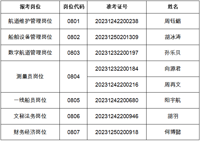 根据《长江航道局2024年度事业编制人员招聘体检、考察事宜公告》安排,现将进入体检和考察人员名单及有关事项公告如下: