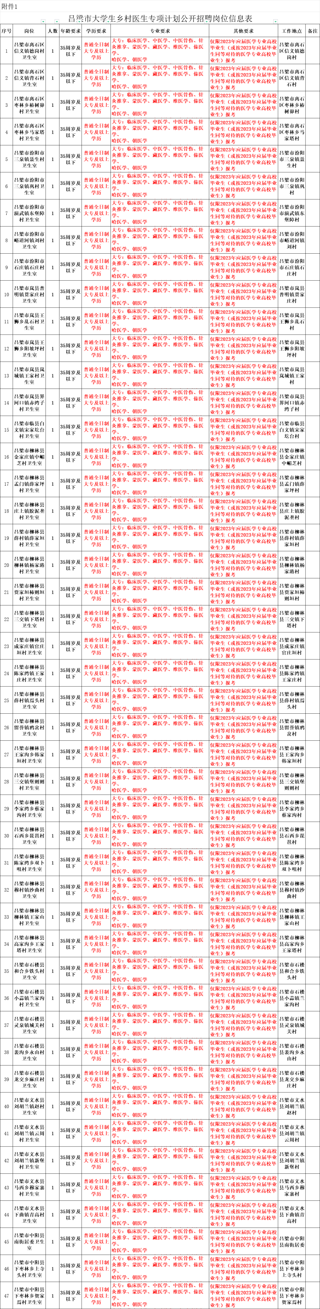 附件【1:吕梁市大学生乡村医生专项计划公开招聘岗位信息表.xlsx】