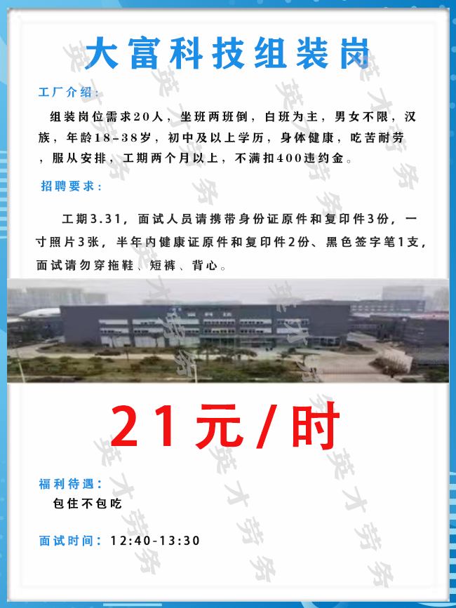 【招聘】普工5名有培训包住宿4000-5000元 ,招聘采购助理3名 月薪6000元