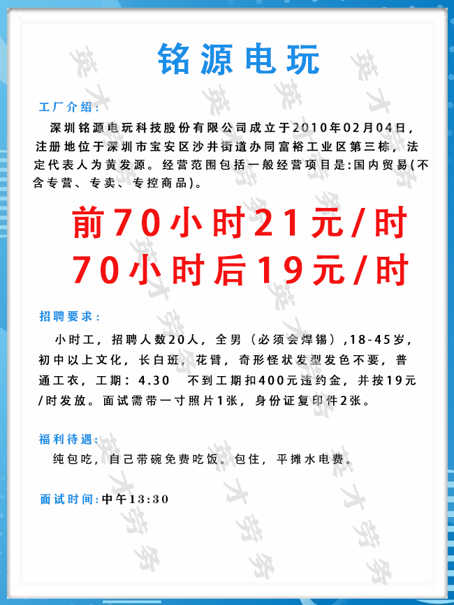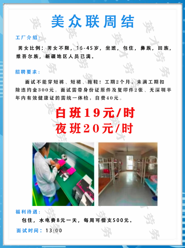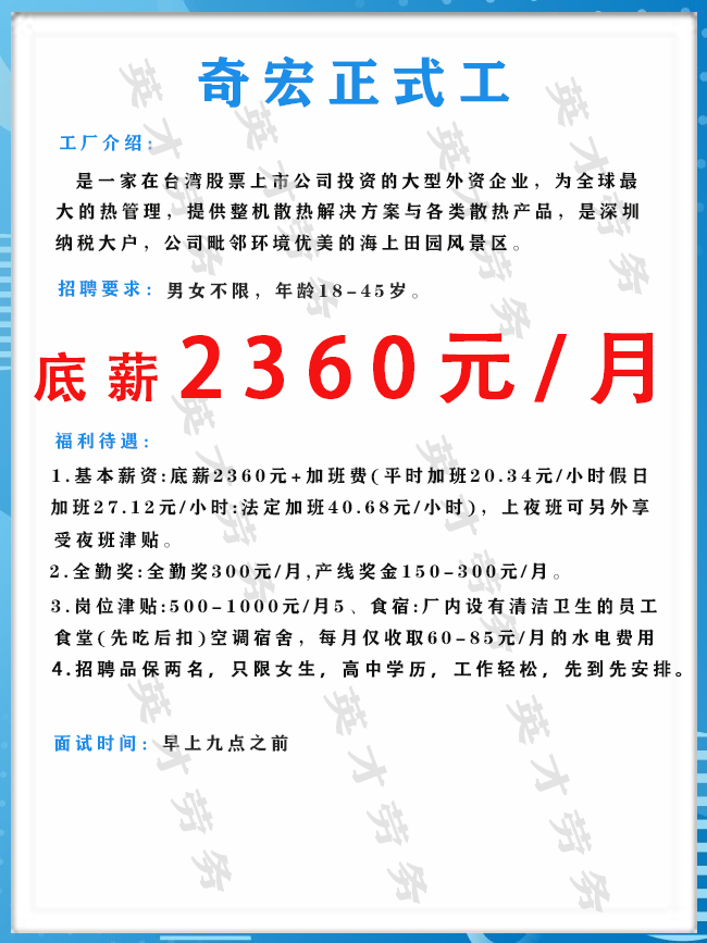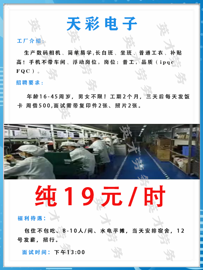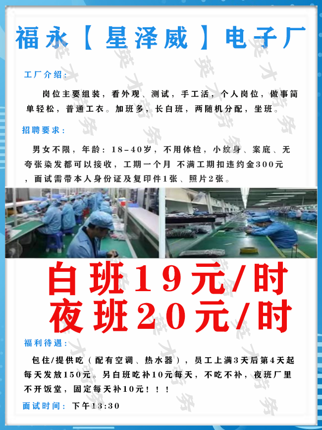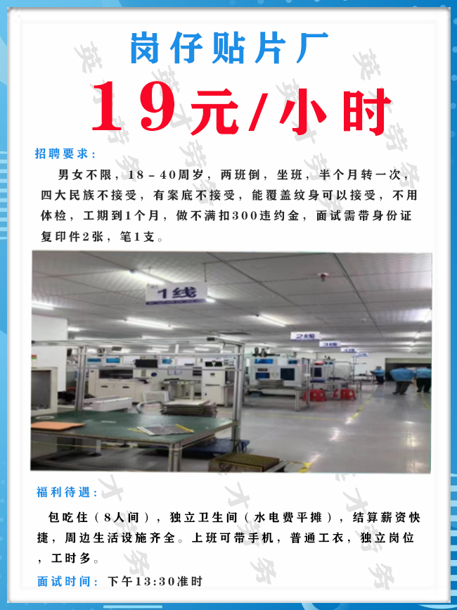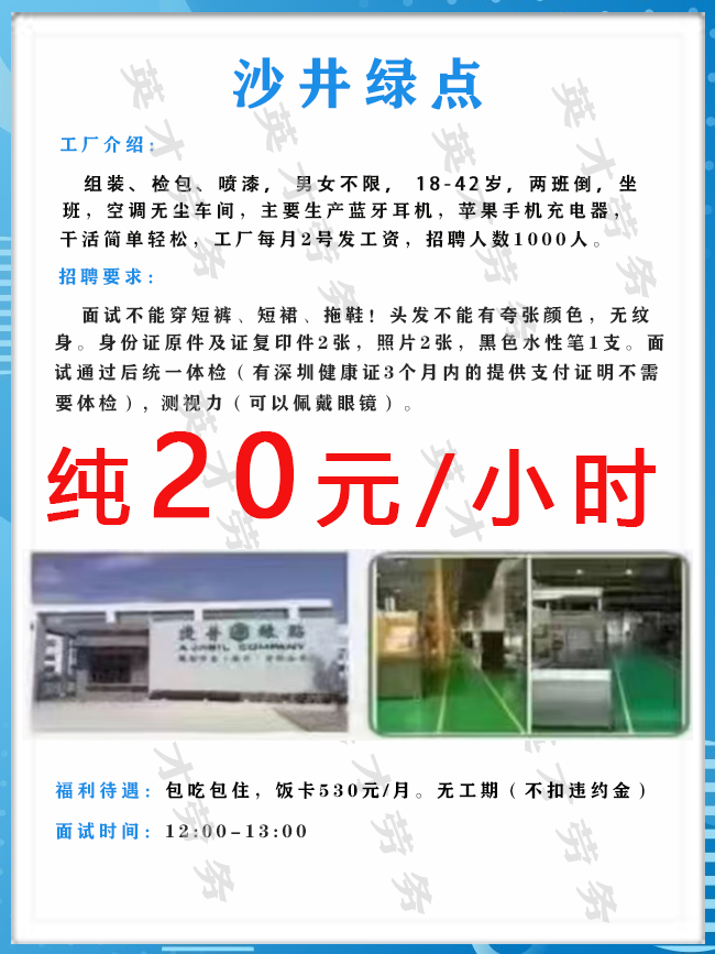 >沙井大型电子厂招聘男女普工1000人,综合薪资6500元左右!