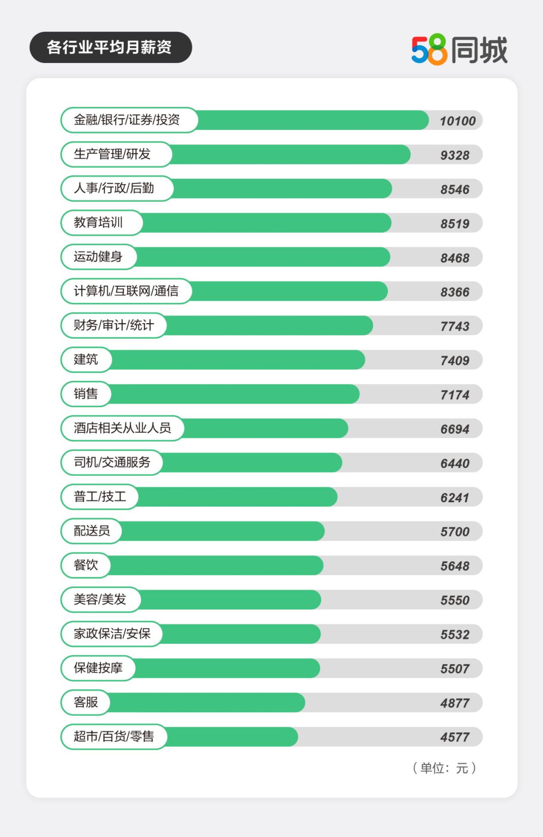 根据58同城最新发布的《2024年返城就业调研报告》,在行业平均工资调查中,金融/银行/证券/投资行业的待遇依旧领跑。