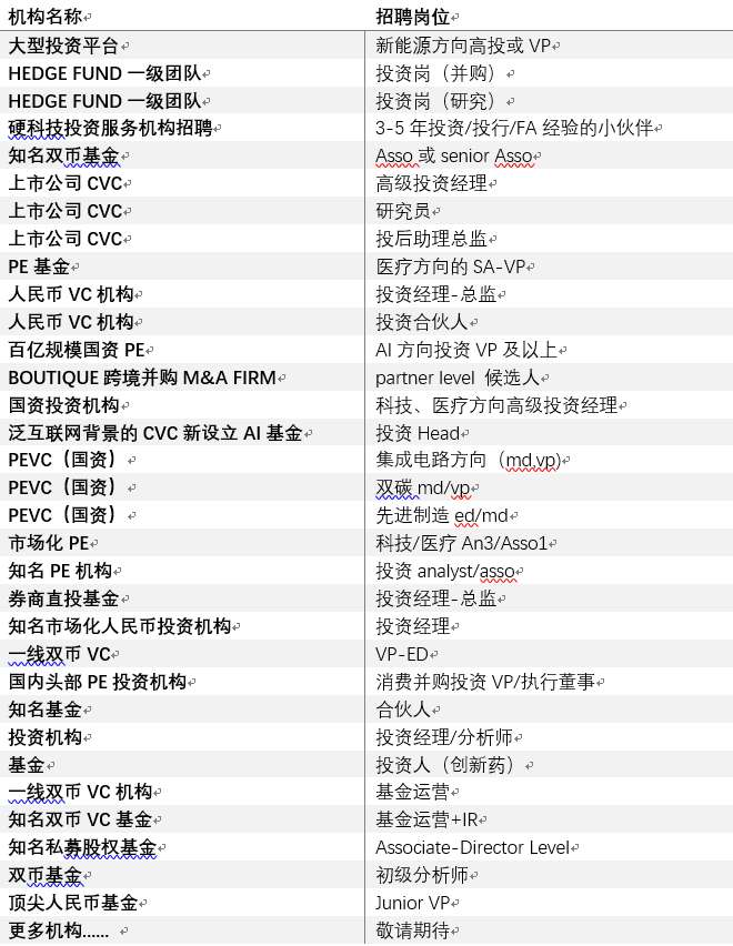 - 对风险投资行业有浓厚兴趣,且希望从事早期投资工作,有VC投资相关实习经验者优先考虑。