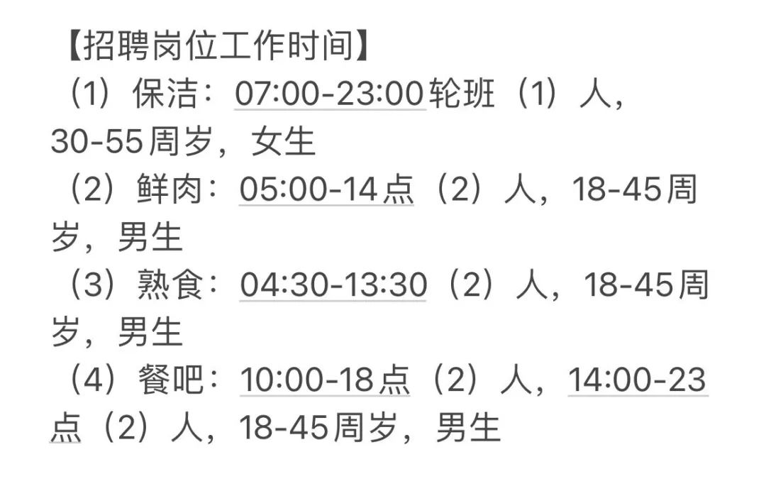【工作时间】:10:00-14:30,16:30-22:00,含吃饭时间,月休4天