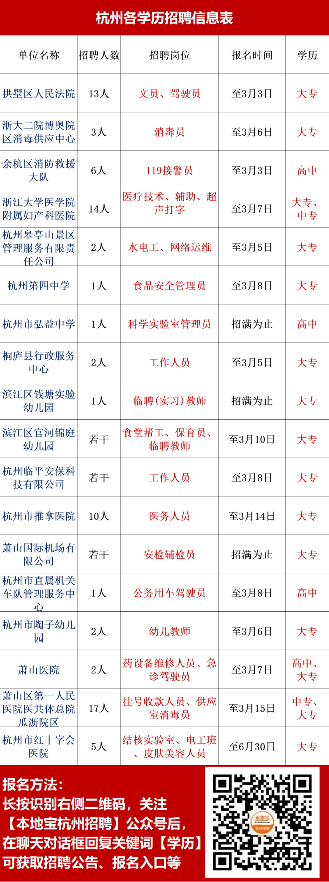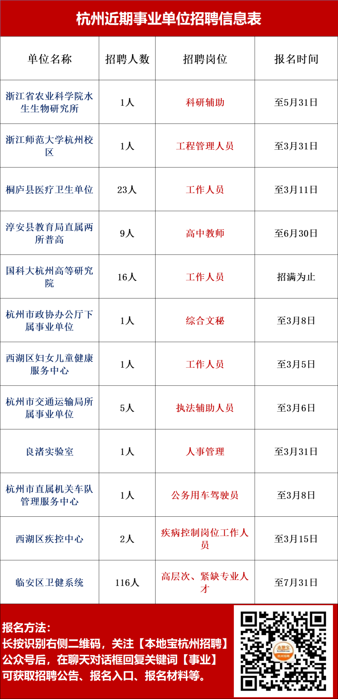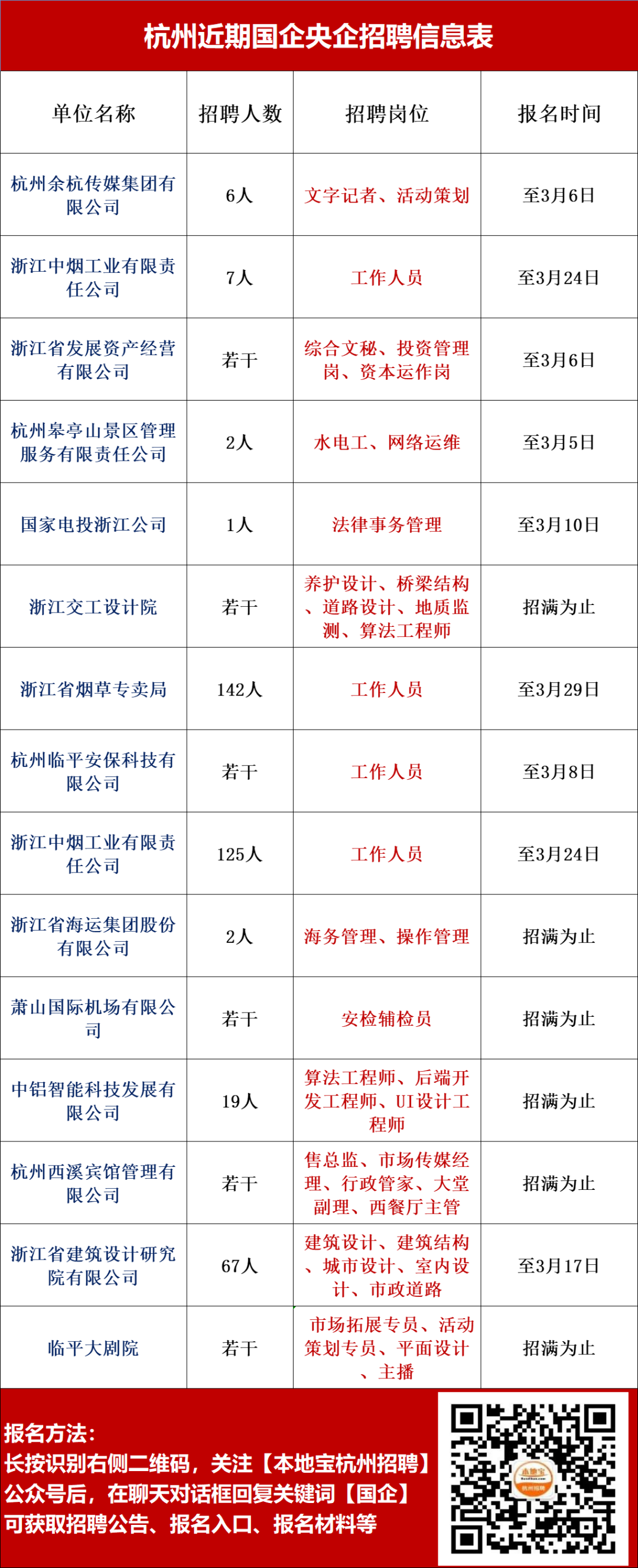 报名方式:点击下方名片关注本地宝杭州招聘微信公众号,首页对话框回复【东站】,即可查看杭州东站枢纽管理委员会报名方式及完整公告