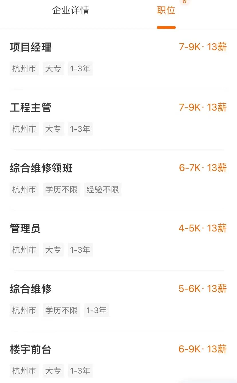 招聘管理员、综合维修、楼宇前台、项目经理、工程主管、工程主管、综合维修领班,详见下表: