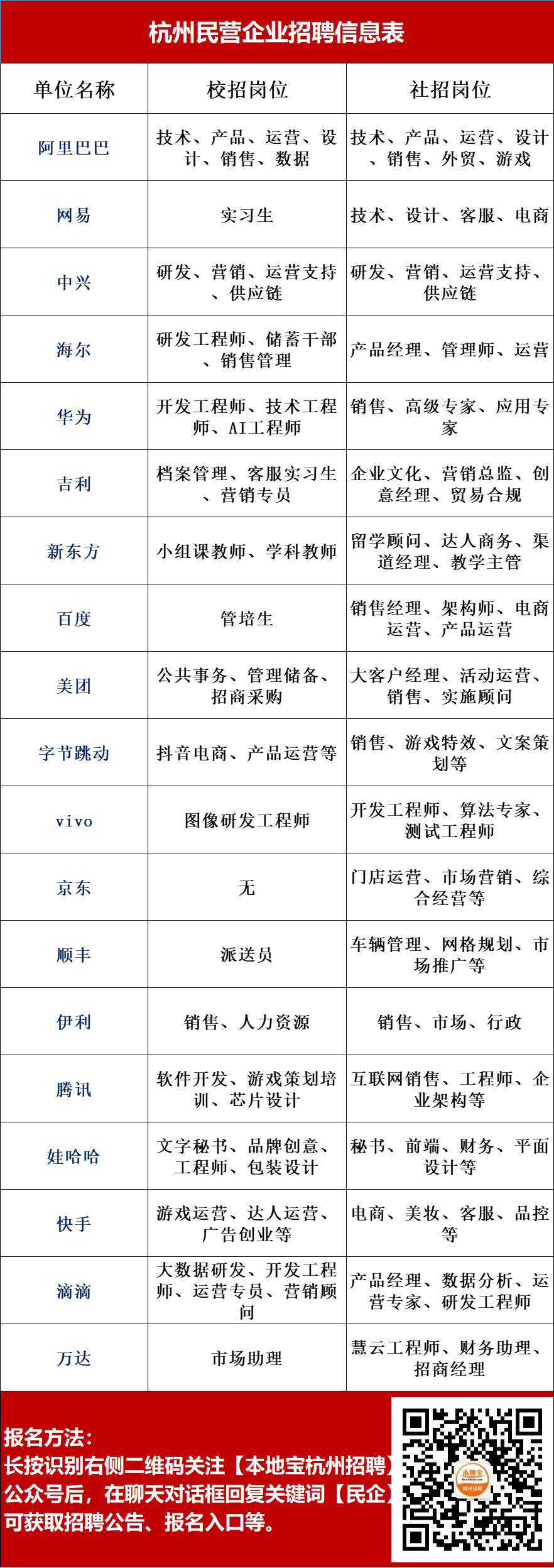本文所有招聘报名入口以及汇总表格内容,都可以点击下方卡片,在【本地宝杭州招聘】公众号回复相应关键词获取