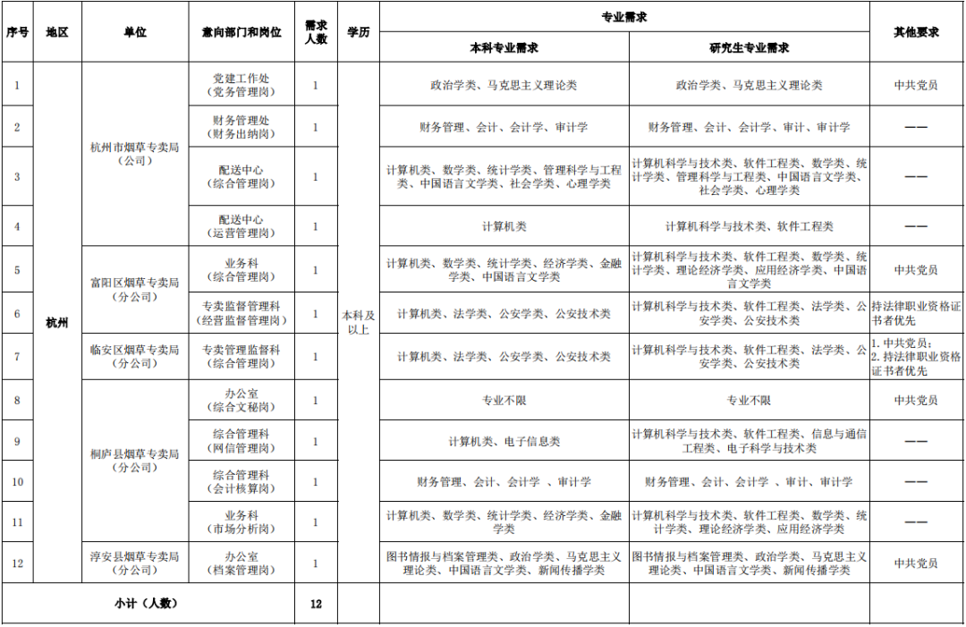 报名方式:点击下方名片关注本地宝杭州招聘微信公众号,首页对话框回复【烟草】,即可查看浙江省烟草专卖局报名方式及完整公告
