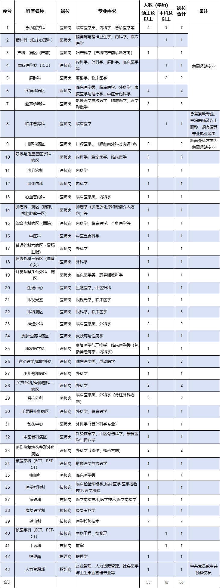 ①报名时间:自发布之日起至计划岗位落实到位止,医院会根据简历情况适时组织面试,具体截止日期视招聘情况及时调整。