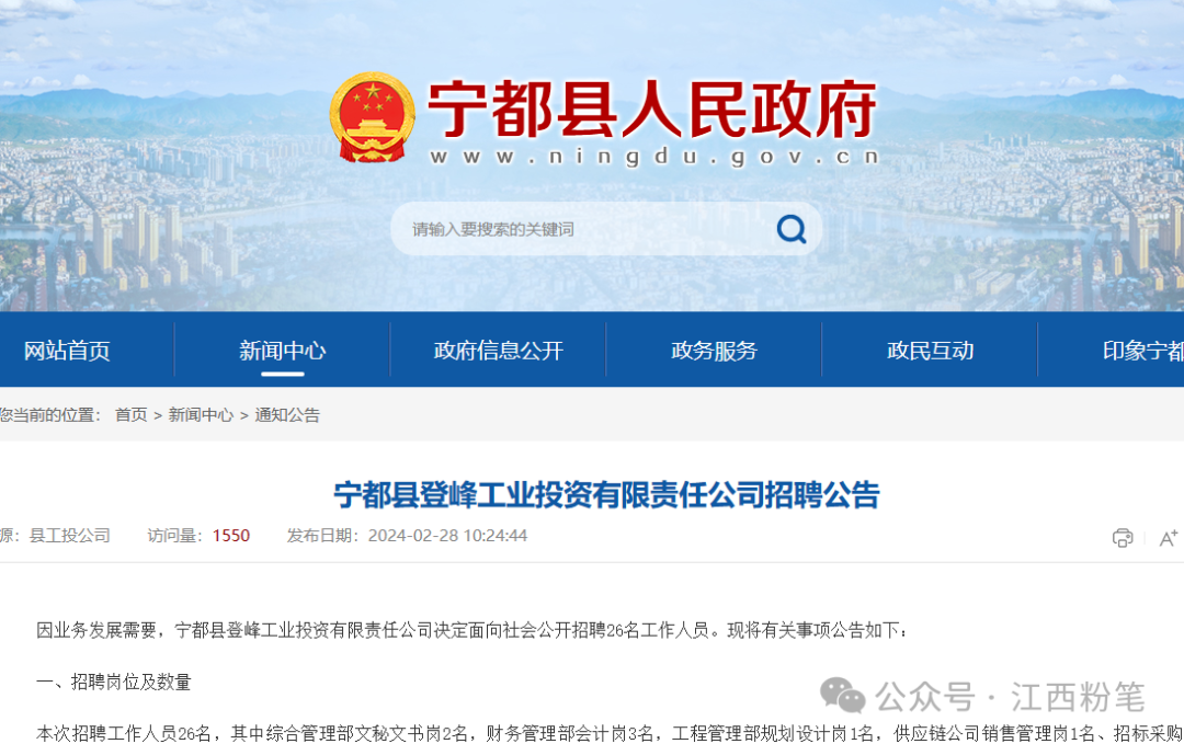 ![]() ![]() 1、上高县国镜资本投资运营集团有限公司公开招聘12名工作人员公告 2、江西浔日新能源有限公司招聘公告 3、【社招】江西鸿庐供应链有限公司招聘公告 4、龙南市人大办公开招聘工作人员公告 招考人数:12人 报名时间:2024.03.04-2024.03.08 17:30 报名方式:网上报名 扫码查看原文👇 招考人数:3人 报名时间:2024.03.04-2024.03.13 报名方式:网上报名 扫码查看原文👇 招考人数:2人 报名时间:2024.03.04-2024.03.24 报名方式:网上报名 扫码查看原文👇 龙南市人大办公开招聘工作人员公告 招考人数:1人 报名时间:2024.03.04-2024.03.11 报名方式:网上报名 扫码查看原文👇 -本文含广告- |