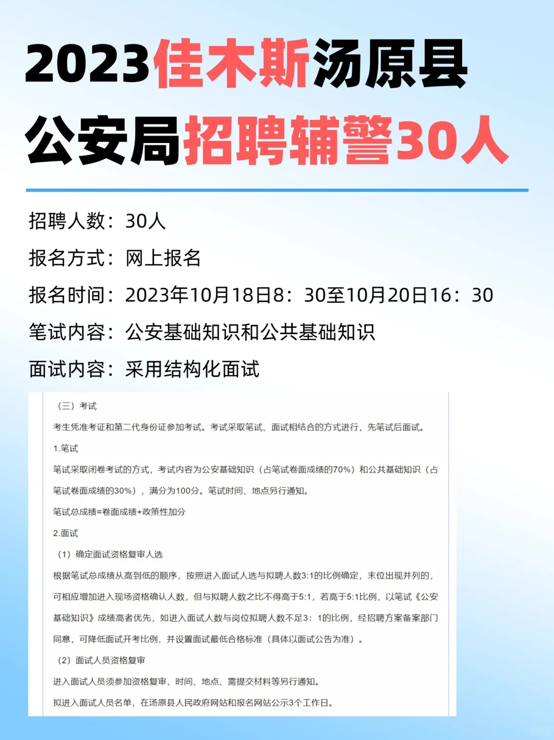 >招聘辅警30人‼️地点:佳木斯汤原县