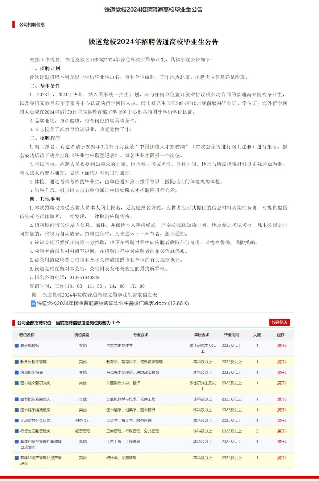>北京招聘,事业编制,解决北京户口,铁道党校2024年招聘