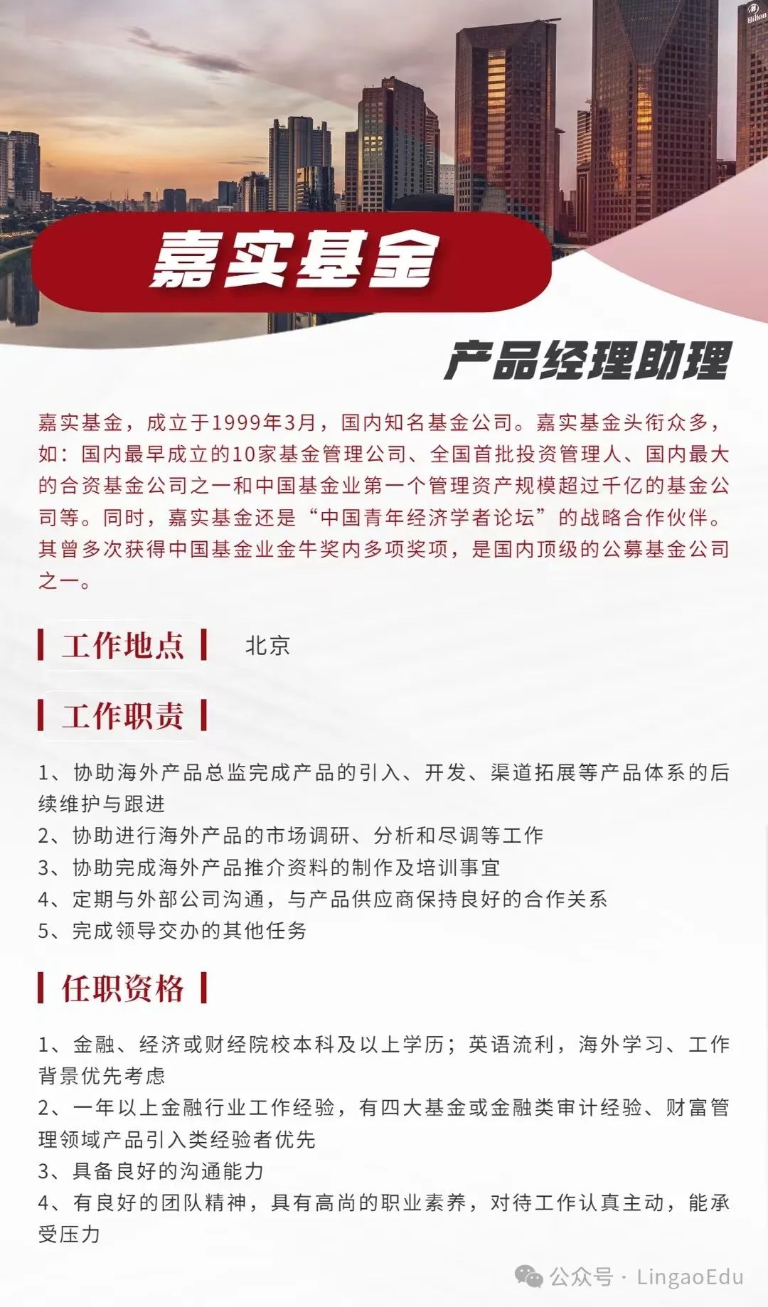 实习推荐|Top基金实习嘉实基金(产品经理助理+Base北京+正式带薪岗+一轮面试快速入职)