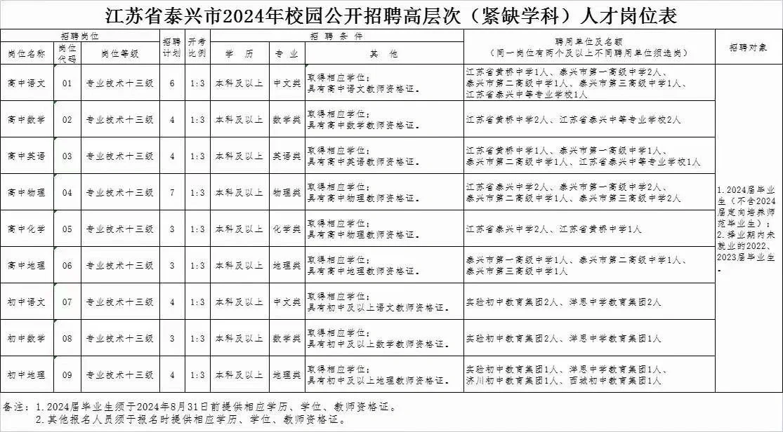 泰兴校园公开招聘高层次(紧缺学科)人才公告出来了