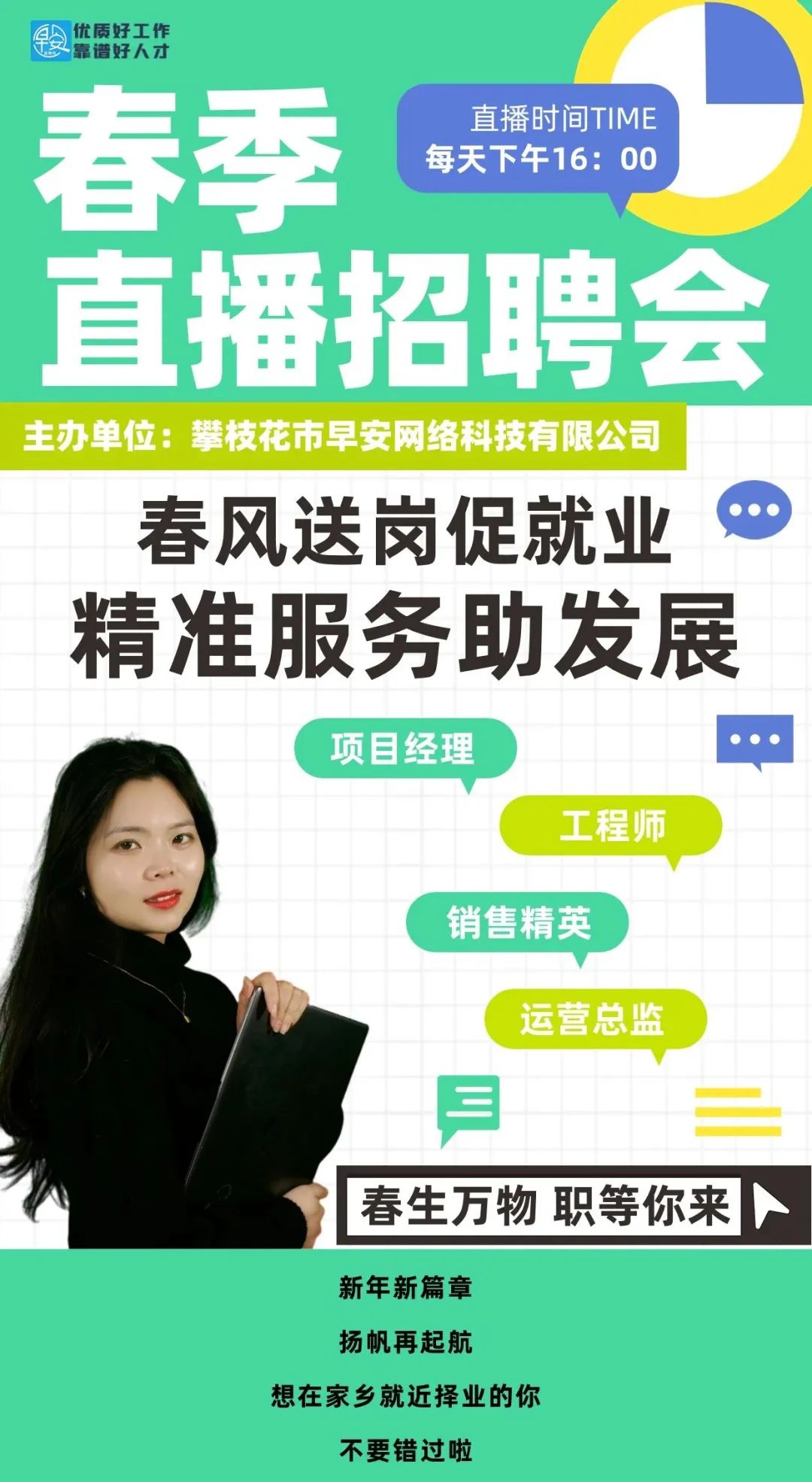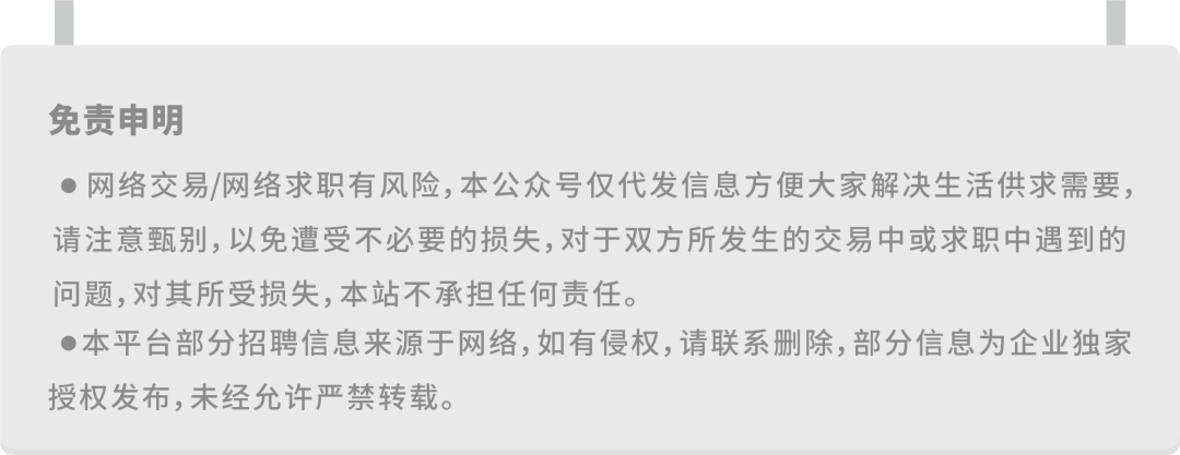 ![]() ![]() ![]() 小编每日为大家 精心收集筛选了一批近期攀枝花市急聘岗位, 推荐给广大求职者, 你可以看看是否有合适自己的工作! 有亲戚朋友也在找工作的 记得帮我们转发分享或者拉进求职群哦! ☝长按识别二维码进入同城招聘首页☝ ☝扫码进同城求职群☝ 如何申请职位? 上方视频附有同城招聘步骤,点击查看 1、关注【攀枝花生活通】同城招聘进入首页页面,找到“同城信息”点击“招聘求职”进行申请职位; 2、找到有意向的职位,务必要认真查看岗位职责和相关信息后可点击【投递简历】按钮,先投递简历,再点击【拨打电话】按钮,即可直接跟企业负责人联系; 3、查看招聘具体要求,符合要求后再投递,请勿盲投!! 4、温馨提示:请认真完善您的求职简历! 小编已为大家整理了最新岗位信息 各大名企岗位已更新 速来查看 推荐优质急招岗位 VIP企业推荐 传单派发员 100元/天(日结) 招聘人数:若干 职位要求:经验不限/35岁以下/学历不限 公司名称:四川花城美居科技服务公司 公司地址:科创路70号鑫洋天御城 职位描述:传单派发,沟通能力强 ![]() 营业员 150元/天(周结) 招聘1人 职位要求:经验不限/25岁以下/学历不限 公司名称:攀枝花市林产装卸搬运经营部 公司地址:攀枝花市西区清香坪街道格萨拉大道 职位描述:营业员帮忙取下货会开车最好 ![]() 就业见习人员 14元/小时(月结) 招聘15人 职位要求:经验不限/25岁以下/大专 公司名称:沃尔玛(四川)百货有限公司攀枝花炳草岗分店 公司地址:攀枝花市东区炳草岗街道攀枝花大道东段-483号 职位描述:1、16-24岁的失业青年或毕业两年之内未就业的大中专毕业生;2、热爱零售行业,愿意在零售行业发展;3、良好的沟通能力和顾客服务意识。 ![]() 学生兼职 12元/小时(月结) 招聘15人 职位要求:经验不限/年龄不限/大专 公司名称:沃尔玛(四川)百货有限公司攀枝花炳草岗分店 公司地址:攀枝花市东区炳草岗街道攀枝花大道东段-426号 职位描述:持有效学生证和身份证,吃苦耐劳,良好的顾客服务意识,适应倒班,每天不超8小时,每周不超40小时 ![]() 社会兼职 21元/小时(月结) 招聘10人 职位要求:经验不限/年龄不限/高中 公司名称:沃尔玛(四川)百货有限公司攀枝花炳草岗分店 公司地址:攀枝花大道东段439号 职位描述:原单位在买社保,工作时间灵活,吃苦耐劳,服从管理。 ![]() 住家保姆 面议(月结) 招1人 工作地址:攀枝花市东区炳草岗街道攀枝花大道东段 工作描述:照顾老人 买菜 做饭 基础家政 ![]() 住家阿姨 面议(月结) 招1人 工作地址:攀枝花市东区炳草岗街道三线大道北段 工作描述: ![]() 全职保姆 3200-3500元/月(月结) 招1人 工作地址:攀枝花市东区炳草岗街道攀枝花大道东段-432号-附5号 工作描述:照顾老太太,居家保姆,只做一人饭菜,工作性质单纯, ![]() 客服 面议(日结) 招5人 工作地址:攀枝花市东区大渡口街道攀枝花大道中段-225号 工作描述:招电话客服两名,只需在手机上操作,无需到市场上跑业务, ![]() 顶修理工 8000-12000元 招聘人数:若干 职位要求:1-3年/50岁以下/学历不限 职位福利:[包吃][包住] 公司名称:攀枝花市佳胜商贸有限公司 公司地址:攀枝花市米易县攀莲镇S214 (联系电话:13398469579) 职位描述:工程机械修理工 ![]() 顶销售代表 5000-8000元 招聘10人 职位要求:1-3年/40岁以下/高中 职位福利:[交通补贴][餐补][话补][医保][社保][住房公积金][节日福利][年假][婚假][免费培训][带薪年假][升职空间][五险] 公司名称:攀枝花市仁和区蕾家蕾通信店 公司地址:仁和区 (联系电话:15181287358) 职位描述:主要从事移动业务的拓展及销售,负责所属片区新老客户的维系以及拓展,有过电信业务工作者优先。 ![]() 顶猪肉销售 20000以上元 招聘9999人 职位要求:经验不限/年龄不限/学历不限 职位福利:[其他][免费培训] 公司名称:小鲜肉鲜活甄选批发 公司地址:攀枝花市东区大渡口街道阳光大道 (联系电话:17321822733) 职位描述:长期招聘攀枝花市东区西区仁和区及乡镇猪肉销售,会切肉及砍骨都可以上岗,本公司提供生猪白条,活猪,等一切关于猪的,攀枝花全市屠宰一级批发,跟市场屠夫拿价一样或更低,你只需要一个摊位和工具摆摊都可以,可免费办理猪肉销售营业执照, ![]() 顶缝纫工(可培训) 3000-6000元 招聘10人 职位要求:经验不限/年龄不限/学历不限 职位福利:[加班补助][餐补][房补][包吃][包住][医保][社保][免费培训][升职空间][五险] 公司名称:攀枝花市海瑞包装有限公司 公司地址:攀枝花市仁和区南山工业园区海瑞包装有限公司 (联系电话:13419322677) 职位描述:1、培训期三至五个月,工资计件+补贴+保底(有吨袋经验者优先); ![]() 会计 面议 招聘1人 职位要求:1-3年/50岁以下/大专 职位福利:[包吃][医保][社保] 公司名称:攀枝花市永联环保科技有限公司 公司地址:攀枝花市金江钒钛产业园区三号桥加油站上行100米 职位描述:一、岗位要求: ![]() 长白班普工 4000-6000元 招聘人数:若干 职位要求:1-3年/50岁以下/中专/技校 职位福利:[加班补助][包吃][医保][社保][节日福利][免费培训][五险] 公司名称:攀枝花市昊大耐火材料有限公司 公司地址:攀枝花市东区弄弄坪街道弄弄坪中路204号 职位描述:1、年满三十周岁以上五十周岁以下 ![]() 手机销售 5000-8000元 招聘6人 职位要求:经验不限/年龄不限/学历不限 职位福利:[社保] 公司名称:攀枝花惠友通讯 公司地址:攀枝花市