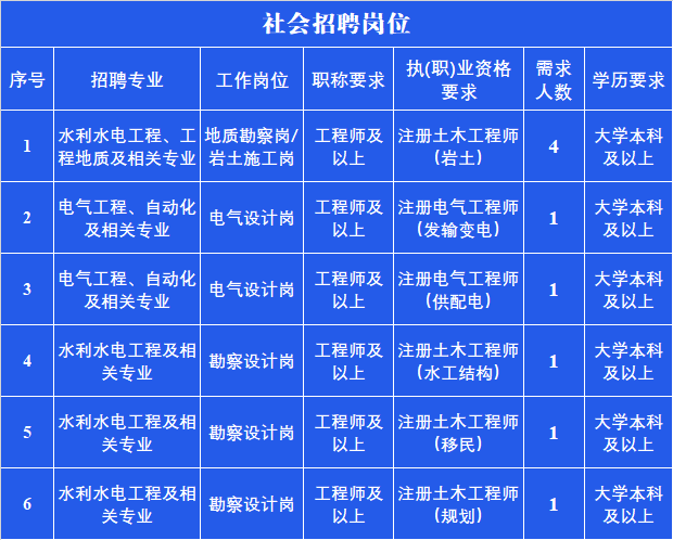 ![]() 河北省水利水电勘测设计研究院集团有限公司2024年社会招聘公告公司简介![]() ![]() 河北省水利水电勘测设计研究院集团有限公司(简称河北水利设计集团),始建于1956年,总部坐落于天津,是集规划、咨询、勘测、设计、科研、试验于一体的综合性甲级设计单位,“勘察、设计、咨询“AAA级单位,国家级高新技术企业。 集团公司持有工程勘察综合类、工程设计水利行业及咨询、测绘、水利工程监理、地质灾害治理、水资源论证等十余项甲级资质,持有建筑行业建筑工程专业、市政行业(给水、排水工程专业)、水土保持类、新能源专业、送电、发电、施工总承包、地基基础工程等各类设计、施工资质,技术实力雄厚,荣获科技进、勘察、设计、咨询等各类奖项1000余项,承担了岗南、黄壁庄、桃林口、双峰寺等水库新建及除险加固、南水北调中线东线、南水北调配套工程、地下水压采、白洋淀蓄滞洪区、雄安新区防洪等各个历史时期重点水利工程勘察、规划、设计、科研任务,是防汛调度、山洪预警技术支撑单位。 集团公司紧紧围绕国家、水利部及河北省有关水利工作重要部署,积极落实国家水网建设要求,服务京津冀市场,在推进重大引调水、重点供水、大中型水库、江河治理、水生态保护修复、大中型灌区、智慧水利等重点建设任务中,充分发挥技术优势,抢抓机遇,勇往直前,为保障国家重点水利战略高质量落实做出了突出贡献。 ![]() 精品工程黄壁庄水库王快水库双峰寺水库南水北调中线工程雄安新区新盖房枢纽工程集团环境宽敞的会议室温馨的休息区干净的员工餐厅整洁的办公区企业文化![]() 集团公司经营理念![]() 高质量服务水利发展,智慧数字转型,全院EPC,快快再快!用设计之都海河英才打造最美丽水利风景。 ![]() 集团公司价值观![]() 育人 兴企 治水 报国 ![]() 集团公司管理方针![]() 创新优质 协同高效 智慧安全 兴水齐家 ![]() “设计联盟杯”足球赛![]() 庆祝建党100周年红歌比赛![]() 参观延安革命纪念馆![]() 青年艺术节福利待遇薪资待遇执行集团公司规定的薪酬待遇。 JOIN US 福利待遇六险两金+教育培训+落户天津+良好职业发展通道+单身宿舍+免费班车+职工餐厅+通讯补贴+定制工装+生日福利+节日福利+健康体检+劳保福利+兴趣协会 JOIN US 招聘条件![]() ![]() 1. 具有中华人民共和国国籍,坚持中国共产党领导,遵守宪法和法律法规; 2. 具备良好的品德及适应岗位要求的身体素质,热爱水利事业; 3. 具有招聘岗位所需的专业背景或实践经验; 4. 具备岗位所需的专业技术能力、相应的职业资格证书; 5. 招聘岗位所需要的其他条件。 ![]() 招聘岗位招聘流程![]() ![]() 1. 报名时间:自公告发布之日起至2024年3月31日; 2. 报名方式:符合招聘条件的人员请填写招聘报名表(扫描下方二维码获取),并将报名表、个人简历及相关证书等以附件形式发送至邮箱:hbslrlzyb@163.com,邮件主题及附件文件名格式:社招+职业资格证书名称+职称+姓名; 3. 资格审查:我集团公司将不定期对应聘者资格进行审查,经资格审查合格的应聘人员,将通过短信、电话等方式通知本人进行面试,审查未通过者不再另行通知; 4. 面试:面试形式以线下面试为主,线上线下结合,主要考核应聘人员的专业能力、其他综合能力等方面的情况,面试时间、地点以电话或短信形式通知; 5. 聘用:根据面试结果,经集团公司研究后确定拟录用名单,通过面试并体检合格者,按要求办理入职手续,签订劳动合同,享受相应的工资福利待遇。 扫描右侧二维码获取招聘报名表 ![]() 注意事项![]() ![]() 1. 应聘人员应确保联系方式畅通无误,及时关注手机短信、微信以及电子邮箱等信息。未获得面试资格的,不再另行通知。 2. 应聘人员应确保所提交简历和相关资料的完整性、真实性,如有弄虚作假,一经发现将取消应聘资格。 3. 我集团公司在招聘过程中不会向应聘人员收取任何费用,请提高警惕,谨防受骗。 4. 我集团公司有权根据实际情况确定面试具体时间、人员,并根据简历投递、筛选以及集团公司岗位需求变化等情况对个别岗位的招聘工作进行调整。 5. 本次招聘最终解释权归我集团公司所有。 ![]() 联系方式![]() ![]() 联 系 人:于老师 卢老师 联系电话:022-26387076 QQ群号:741056147 邮箱:hbslrlzyb@163.com 地址:天津市河西区洞庭路16号郡都大厦1号楼 河北省水利水电勘测设计研究院集团有限公司 ![]() ![]() END ![]() PS:敬请投递时标注信息来于"天津人才招聘"公众号,谢谢! 欢迎联系职位发布:2747986045@qq.com (不接收简历)