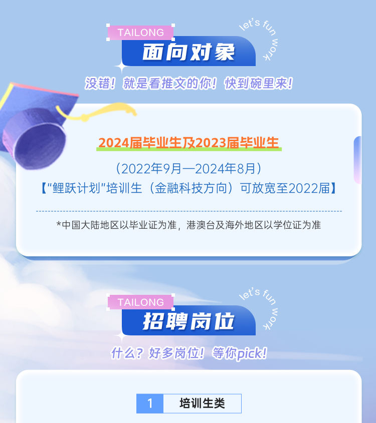本公众号的招聘信息均来自于:全网信息的整理汇总、企业HR/员工的委托发布。招聘信息均为免费发布与自行投递!投递信息均通过了官方邮箱与链接的认证,建议同学仍须自行注意,谨防虚假信息,上当受骗。