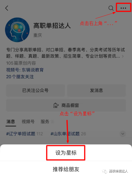 星标「高职单招达人」,步骤很简单,按下图操作即可: