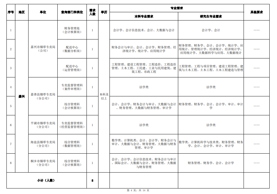 回复“ 中国烟草 ”获取岗位表、进行网上报名