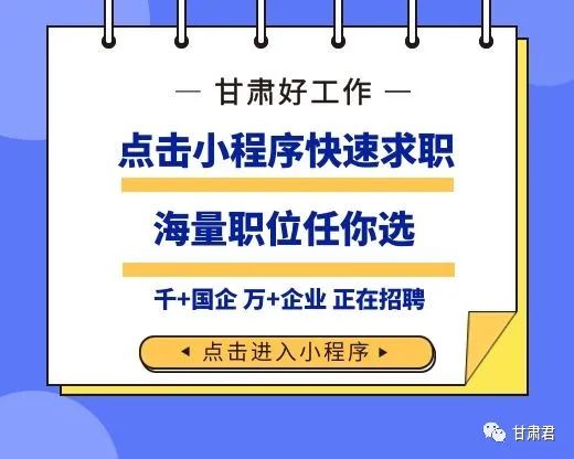 第一时间提供甘肃省内公务员、事业单位、国有企业招考信息,各类考试公考咨询服务!点击标题下方【甘肃君】关注并置顶后即可每日收到招考信息。