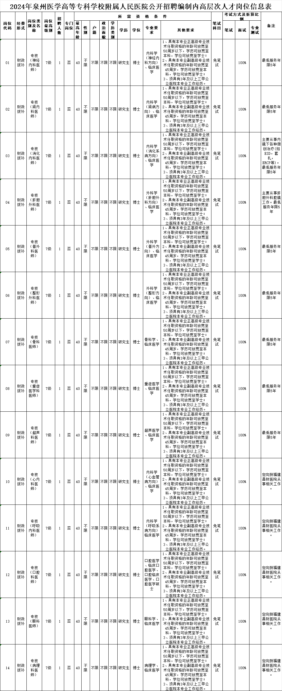 2024年泉州医学高等专科学校附属人民医院公开招聘编制内高层次人才公告