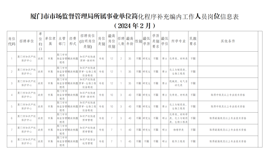 厦门市知识产权保护中心拟公开招聘高层次专业人才15名