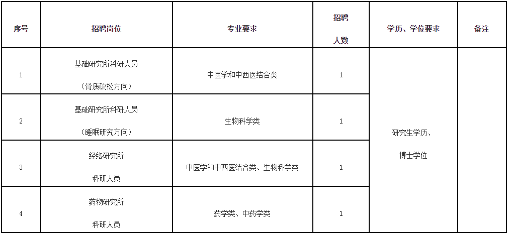 福建省中医药科学院拟面向社会招聘高层次人才4名