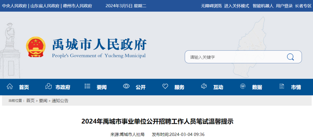 2024年禹城市事业单位公开招聘工作人员综合类笔试和教育、卫生类笔试将于3月10日上午举行。为确保广大考生顺利考试,现将有关事项提醒如下: