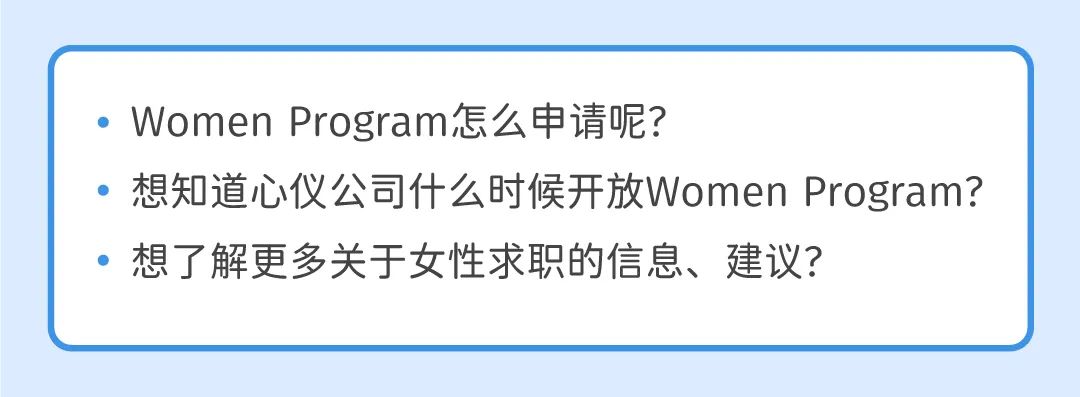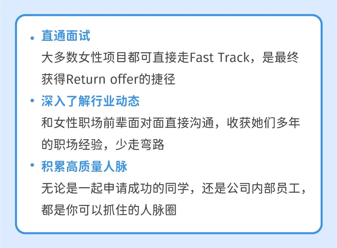 如果你恰好处于低年级,在缺乏本地工作经验和求职人脉的情况下,各公司开放的Women Program是你最好的选择。