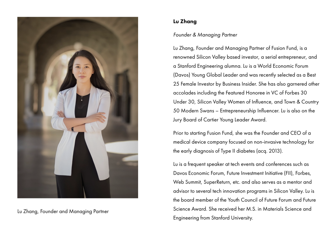 她是Fusion Fund创始人兼管理合伙人,硅谷知名投资人,连续创业者,斯坦福材料科学与工程硕士。