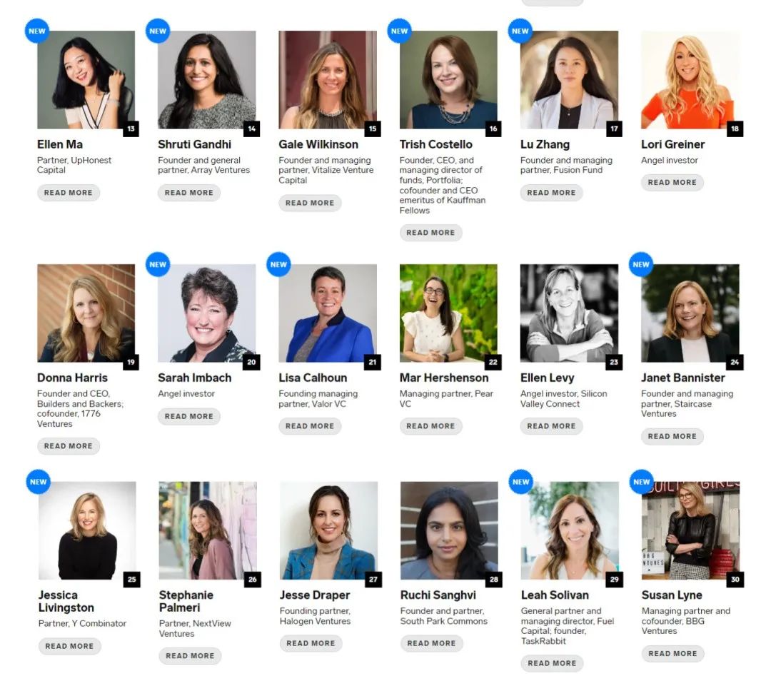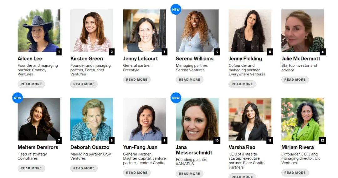 在Insider公布的榜单中,你可以看到各种肤色、各种背景、各个年龄层的优秀女性投资人:
