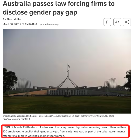继2023年3月通过立法👇,迫使政府披露男性和女性员工的薪酬后,首次发布了员工超过100人的公司的性别薪酬差距数据。